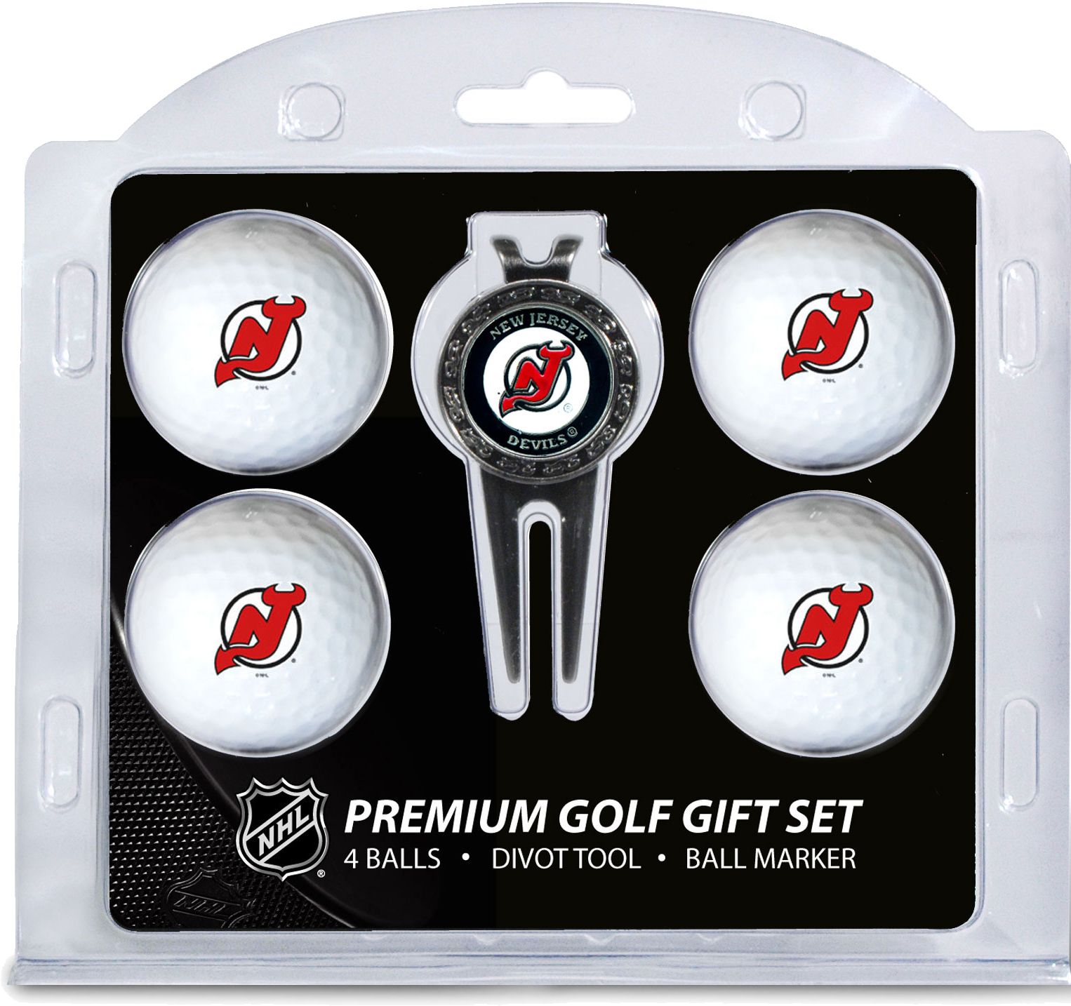 Add some hockey flair to your favorite golfer’s game with the Team Golf® New Jersey Devils Premium Golf Gift Set. The set features four golf balls with the team logo, leaving no doubt who the biggest Devils fan is. With a double-sided, magnetic ball marker and divot tool, this gift set has everything a hockey fan needs to hit the links in style. Give the perfect gift with the Team Golf® Premium Golf Gift Set.