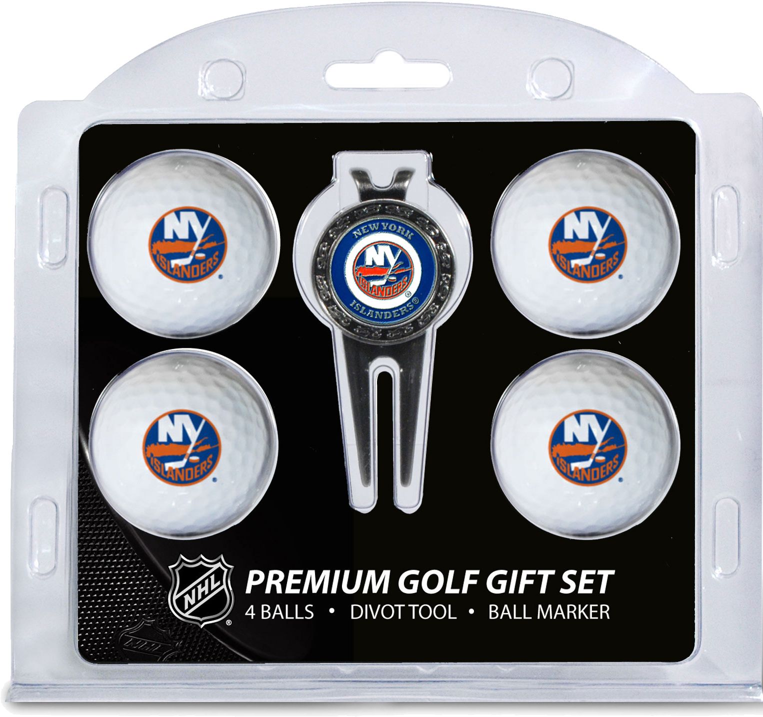 Add some hockey flair to your favorite golfer’s game with the Team Golf® New York Islanders Premium Golf Gift Set. The set features four golf balls with the team logo, leaving no doubt who the biggest Islanders fan is. With a double-sided, magnetic ball marker and divot tool, this gift set has everything a hockey fan needs to hit the links in style. Give the perfect gift with the Team Golf® Premium Golf Gift Set.