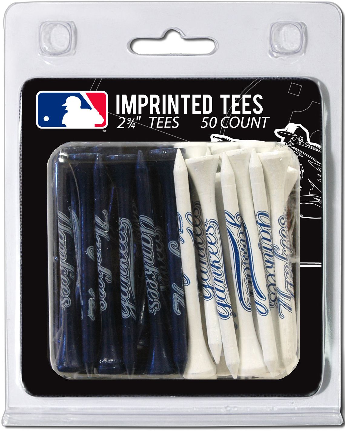 Show your adoration for the Yanks with the Team Golf® New York Yankees Golf Tees Pack. This pack of 50 tees features the Yankees wordmark printed on the side of each tee and the team colors. These 2-3/4” tees are perfect to use when you tee up your next ball. Hit the links with the Yanks on your mind with this Team Golf® tees pack.