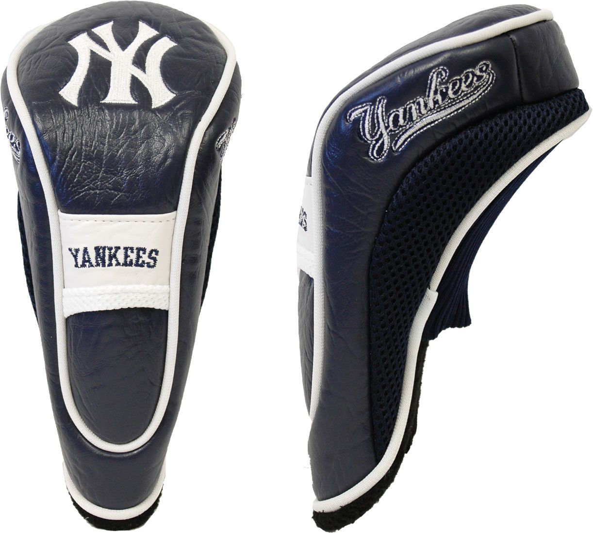 Put your baseball pride on display when you hit the links with the Team Golf® New York Yankees Hybrid Headcover. This unique headcover comes adorned with the team logo and colors, while the buffalo vinyl and acrylic mesh keep your club protected on and off the green. This headcover is designed to fit all hybrid and utility and most fairway clubs, and the VELCRO® closure system and fleece lining provide extra protection.