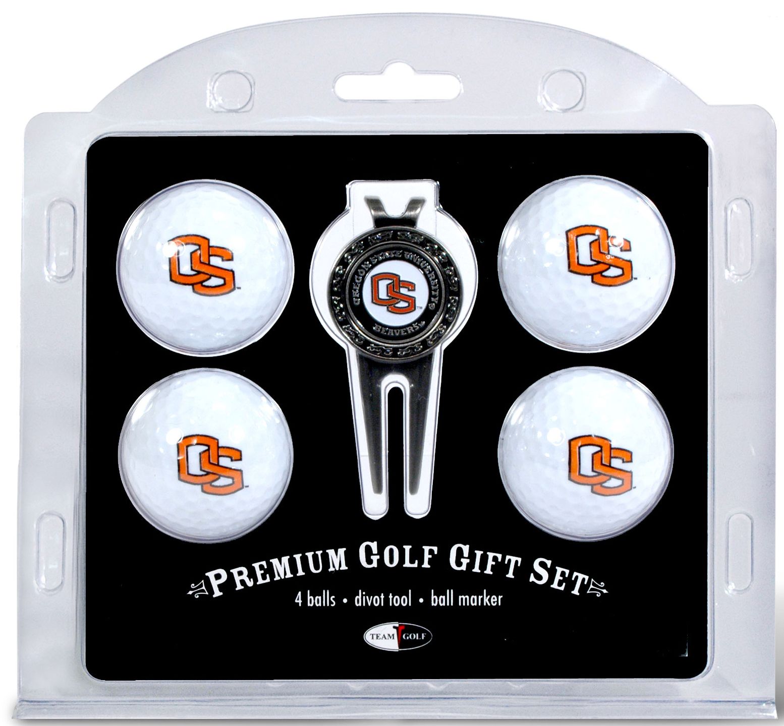 Give the golf enthusiast in your life the perfect gift with the Team Golf® Oregon State Beavers Four Golf Ball and Divot Tool Gift Set. This set includes four regulation golf balls, each durably imprinted in full color with your school’s team logo. Also included is a divot tool with a belt clip and removable double-sided, color-filled enamel magnetic marker. An extra marker is included on the back.