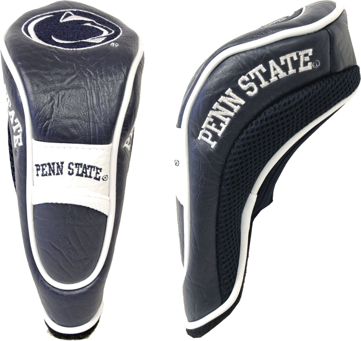 Incorporate some team spirit into the protection of your club with the Team Golf® Penn State Nittany Lions Hybrid Headcover. Fleece lining and a durable buffalo vinyl and acrylic mesh construction provide optimal club protection, while embroidered team graphics ensure that your fandom is clearly displayed. Everyone on the course will know who you root for when you get the Team Golf® Hybrid Headcover.