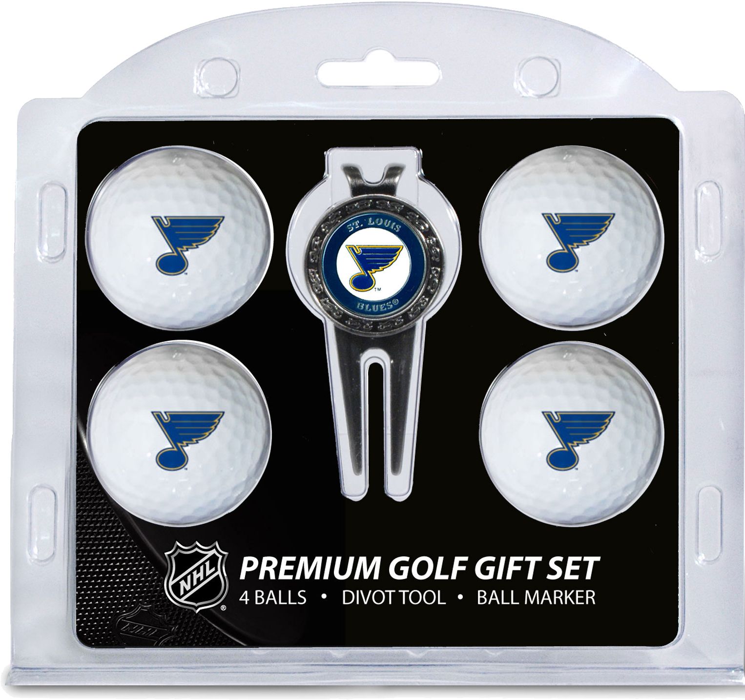 Add some hockey flair to your favorite golfer’s game with the Team Golf® St. Louis Blues Premium Golf Gift Set. The set features four golf balls with the team logo, leaving no doubt who the biggest Blues fan is. With a double-sided, magnetic ball marker and divot tool, this gift set has everything a hockey fan needs to hit the links in style. Give the perfect gift with the Team Golf® Premium Golf Gift Set.