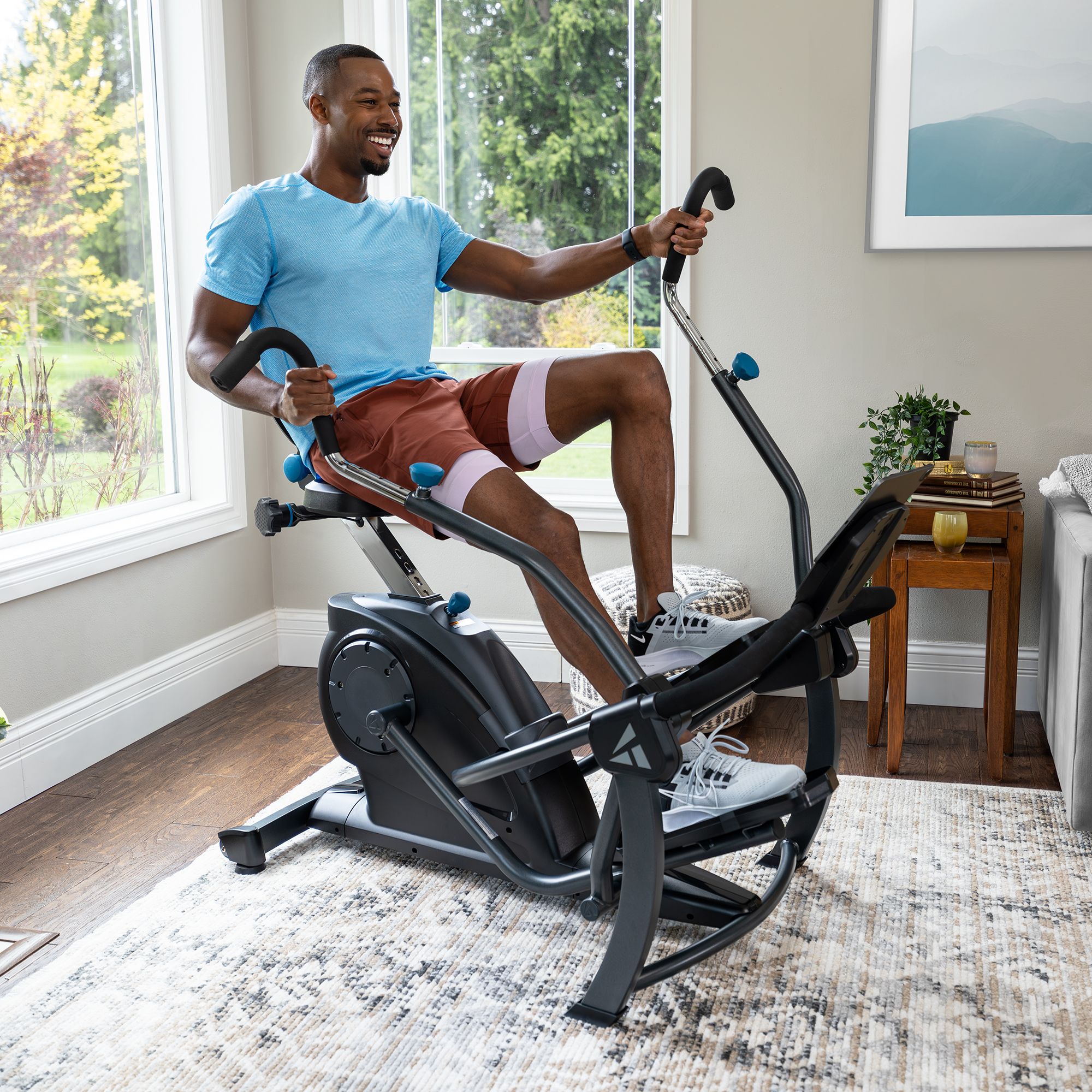 The FreeStep LT1 Cross Trainer provides a zero-impact, full-body workout with patented features that deliver PT-quality exercise at home. Whisper-quiet, friction-free magnetic resistance means you can exercise while listening to music or watching your favorite shows. Easily adjust multi-grip handles to target biceps, triceps, and back muscles. The LT1 features pedals with a wide grip surface and edge guards, and a comfortable 3-position recline seat with height adjustability. With its smooth, natural stride and comfortable recumbent position, the FreeStep LT1 transforms total body cardio and strength into feel-easier exercise.