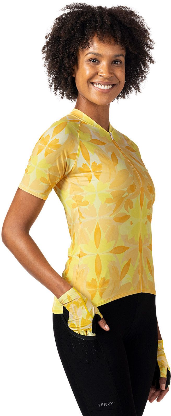 Minimally constructed for speed and comfort, Terry is pleased to offer the Soleil Short Sleeve Jersey in a new recycled micropoly spandex fabric that feels weightless, wicks moisture quickly, and provides a more eco-friendly and sophisticated UPF 50+ approach to sun protection. The jersey also offers minimized seams and extended sleeves so they're a little longer than other short sleeve jerseys. Fully featured with an extra-long front zipper and 3 open rear pockets.