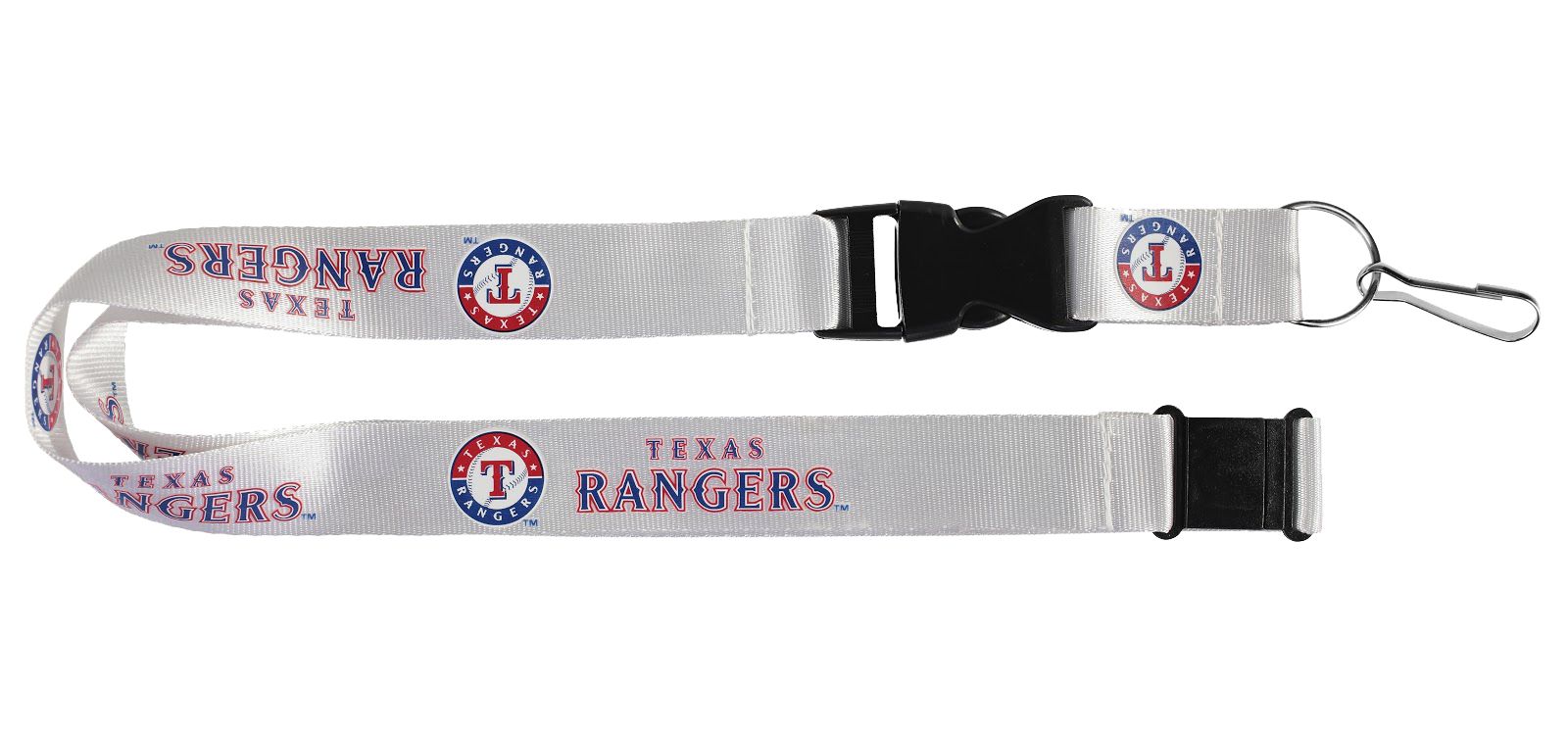 Store your keys on a team themed piece of apparel with the Aminco® Texas Rangers Lanyard.