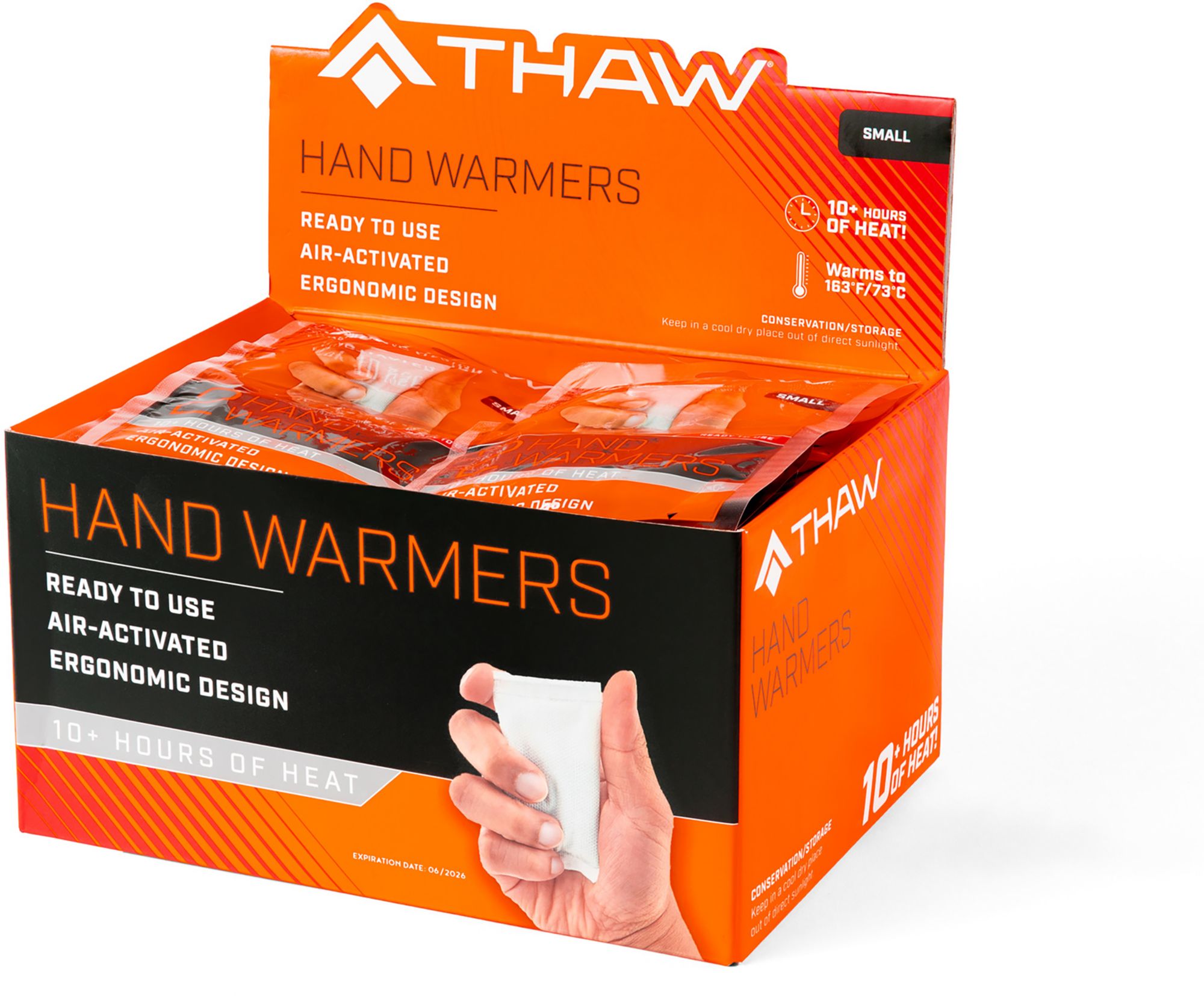 Don't "Bundle Up"..."Bundle Off" with Thaw's small disposable hand warmer, sold in increments of 2. Thaw's unique chemistry compound makes our disposable warmer last longer than others. When opened, air reacts to the ingredients inside the pouch to create a safe and long lasting heat so you can get on with your outdoor activities. Use it all day then dispose of it easily. With the Thaw Disposable Small Hand Warmer, you don't have to let cold stand in your way.