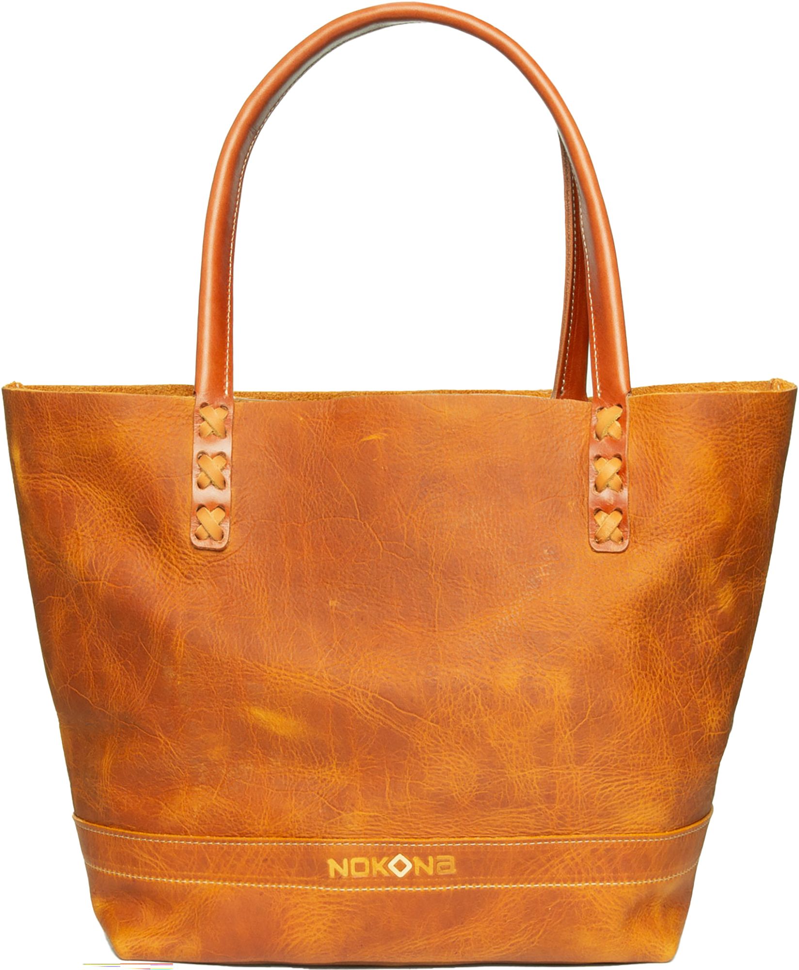 Carry America’s pastime with you in style. Handcrafted with our proprietary ballglove leather, the modern simplicity of the Nokona Tote™ highlights the richness of Nokona’s leather. Features two interior pockets to hold your phone and other trinkets, and includes authentic ballglove lacing cross-stitching detail at the handles. The Nokona Tote™ is offered in classic Walnut Crunch™, Generation™ and Black Stampede™, all full-grain American steerhides that are soft yet durable, and that will age beautifully. Every Nokona tote is individually cut, stitched, and assembled in the USA, giving each one its own unique identity and feel. Personalize the tote with a monogram or name on the inside pocket to really make it your own.