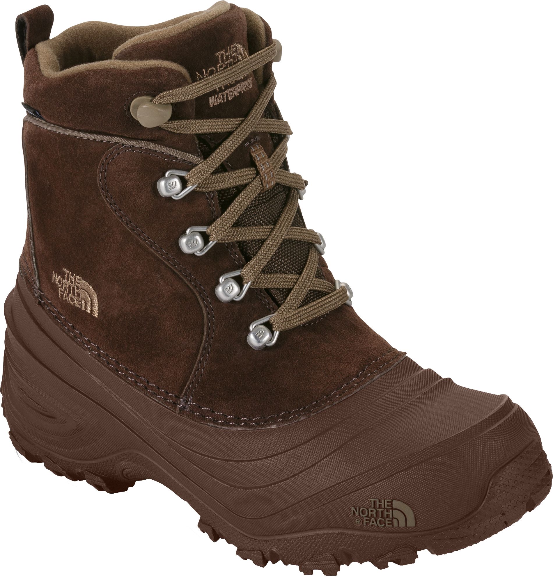 Send them into tough winter conditions in confidence with The North Face® Kids' Chilkat 200g winter boots. With a durable waterproof construction, the Chilkat boot keeps them toasty with Heatseeker™ insulation and fleece lining. EVA midsoles offer lasting comfort, while Winter Grip® outsoles provide reliable traction on slippery, snowy and icy surfaces.