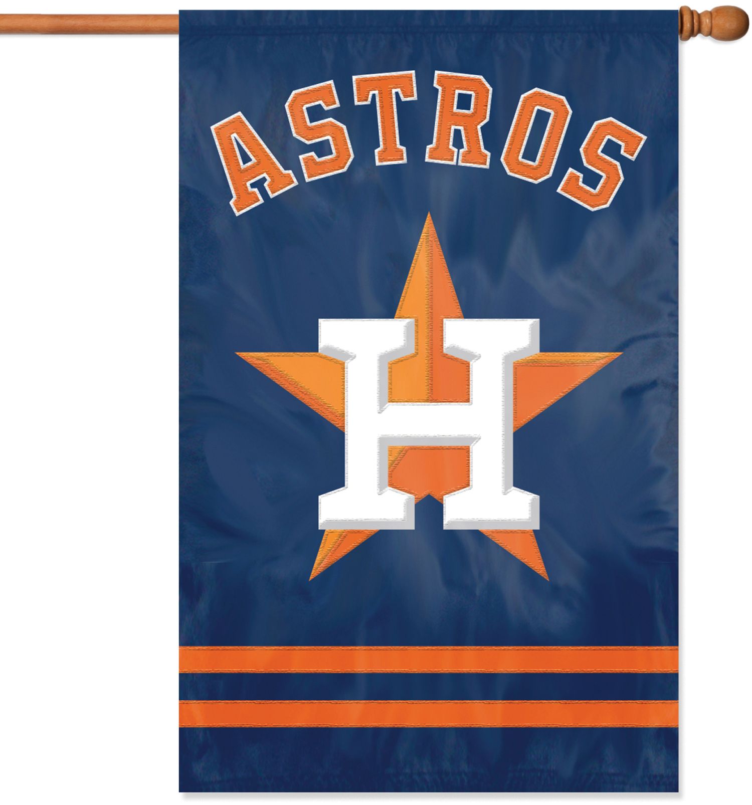 Declare your allegiance to all who can see when you hang the Party Animal® Houston Astros Applique Banner Flag at your domain. This team banner flag measures 44” x 28” and is made of weather-resistant nylon. Display your team pride all year round with the Party Animal® Houston Astros Applique Banner Flag.