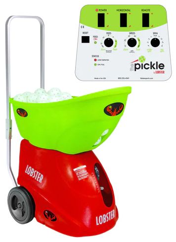 The pickle by Lobster is a full-featured pickleball machine that outperforms all others on the market. Our pickleball machine throws balls up to 60 mph and offers both heavy top and backspin. Includes a 2-function remote control. The large hopper holds an impressive 125 pickle balls and the pickle by Lobster can challenge you for up to 4 hours per charge, allowing you to master shots like the dink, drive, lob, and groundstrokes-taking your game to the next level. For a great workout, the random oscillation will make you focus on your footwork, while the sky-high lob capability will keep you on your toes, improving any weak area of your game. At only 35 pounds, the pickle by Lobster’s smart design features an inverting hopper, folding handle, and large 8-inch wheels, which make it easy to get the pickle in and out of your car, over curbs, and The pickle by Lobster is made in the USA and is covered by Lobster's 2-year warranty. This pickleball machine works with indoor and outdoor pickle balls.