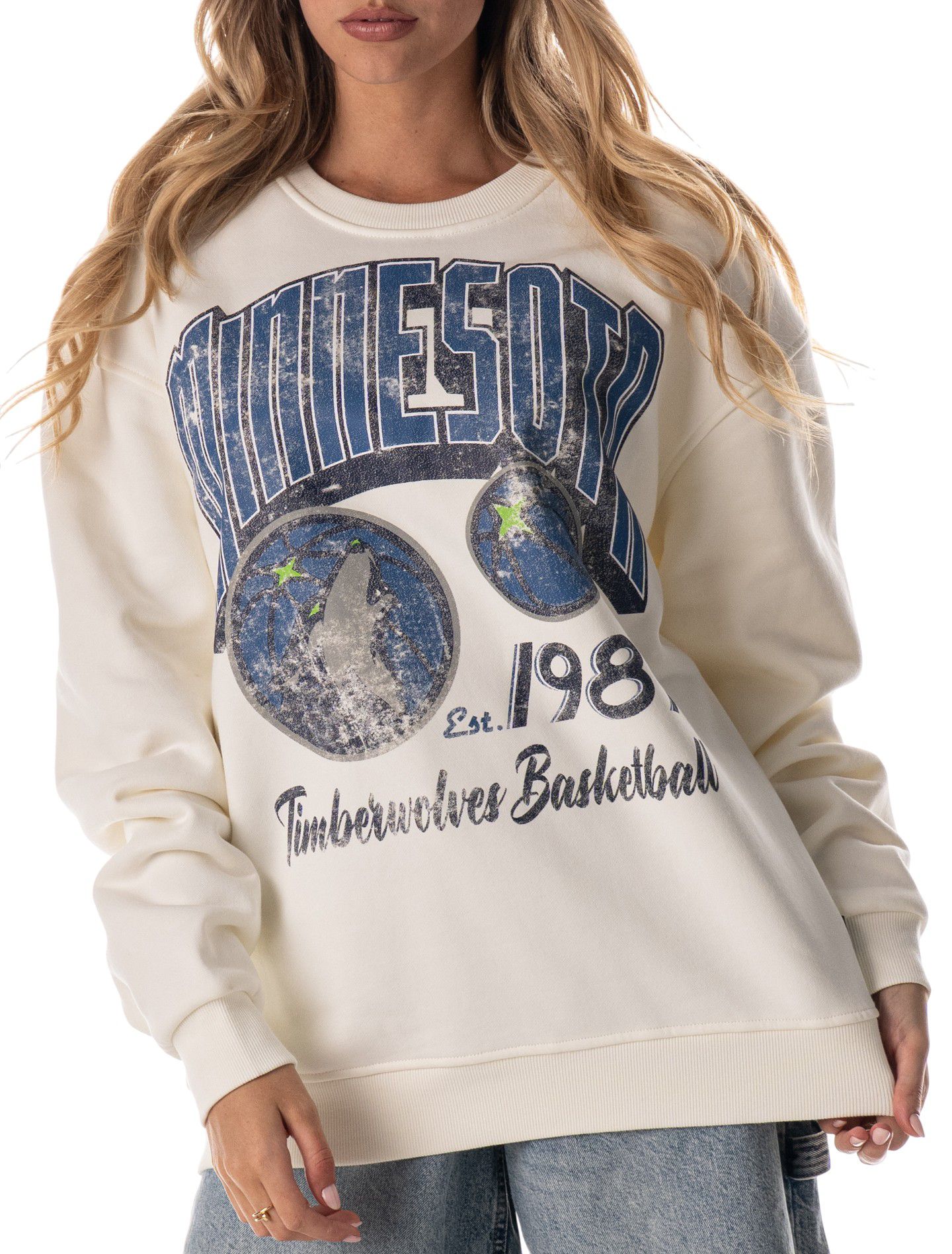 The Wild Collective Adult Minnesota Timberwolves Off-White Graphic Crewneck Sweatshirt
