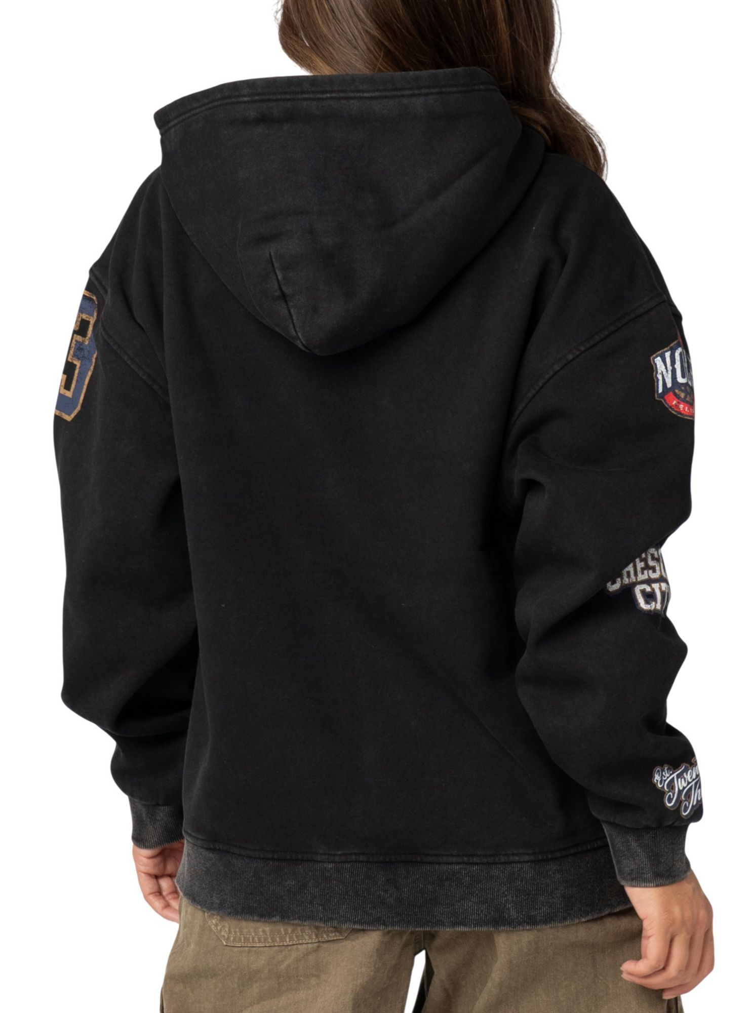 Bring your courtside energy everywhere you go. This NBA zip hoodie turns classic fan gear into a streetwear statement with bold team screen print patches running down each sleeve. Where authentic fandom meets elevated design, The Wild Collective redefines what it means to rep your team.