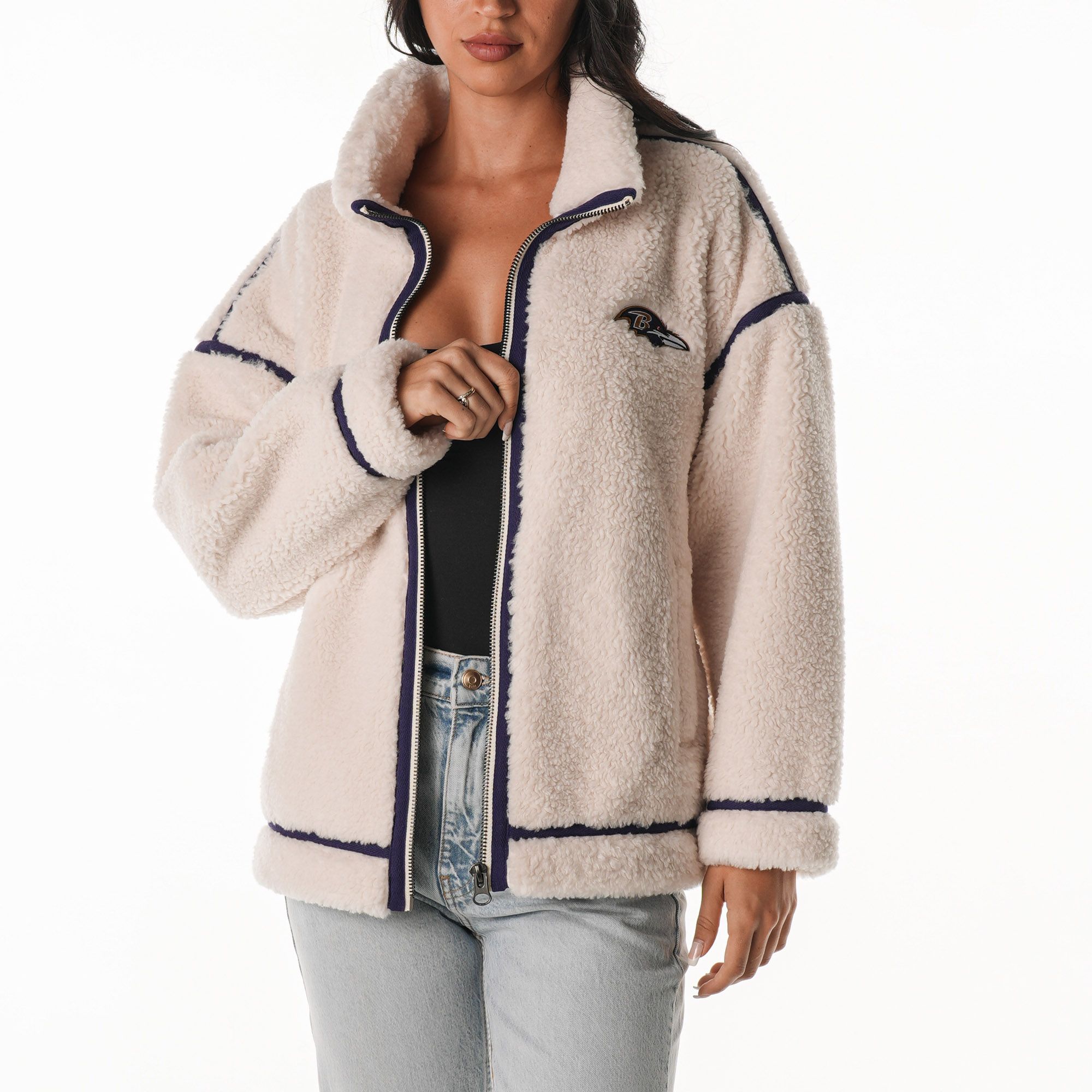 The Wild Collective Women's Baltimore Ravens Natural Taping Sherpa Jacket
