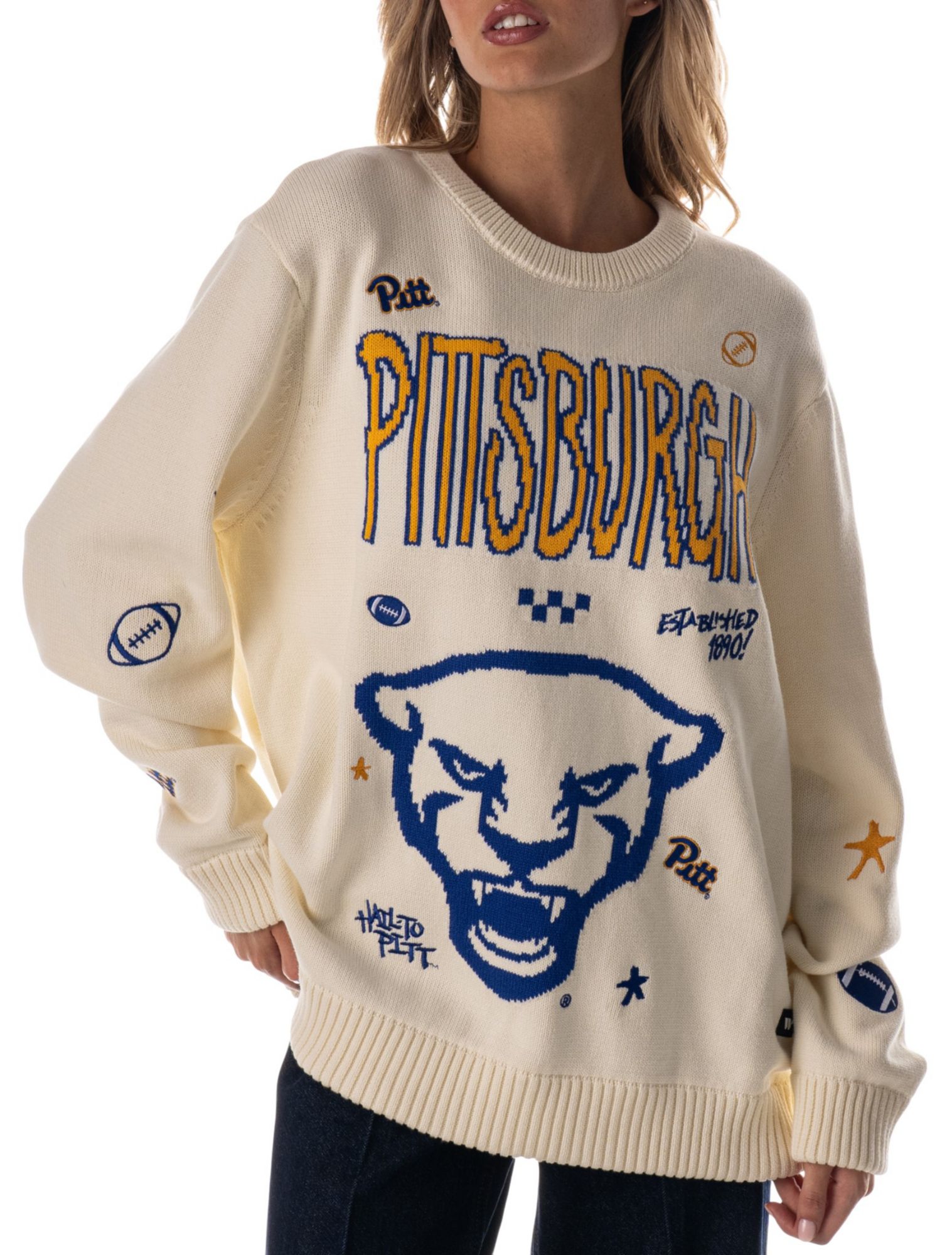 The Wild Collective Women's Pitt Panthers White All Over Crewneck Sweater