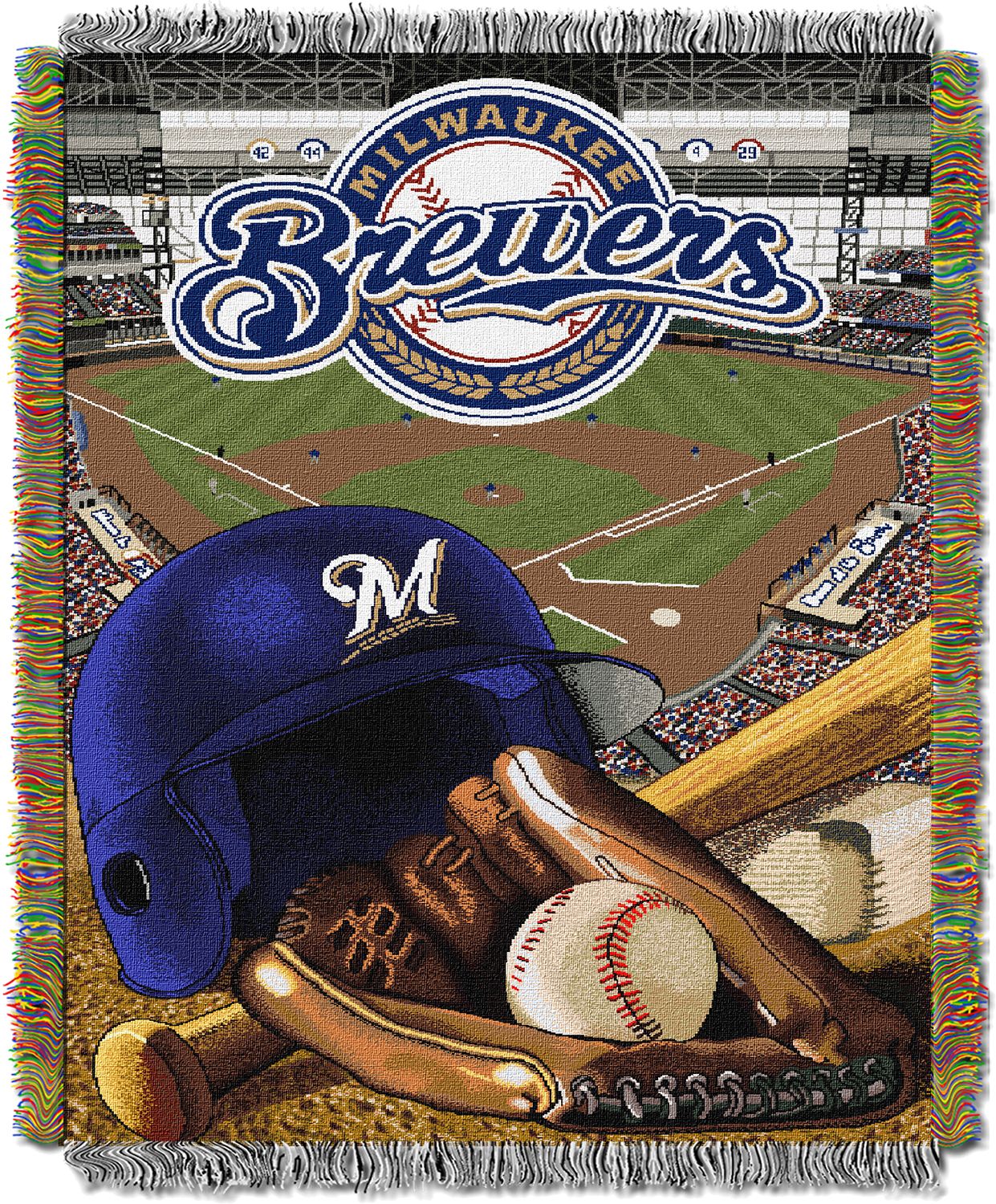 Get the decoration your fan cave’s been missing with the TheNorthwest® Milwaukee Brewers Home Field Advantage Blanket. The eye-catching baseball images featured at the forefront with the Milwaukee-themed background shows your unbeatable passions for the team. Measuring 46” x 60”, this throw is a great size for snuggling with on the couch or for hanging up on a wall. Cover up and show you team fandom with this woven blanket.