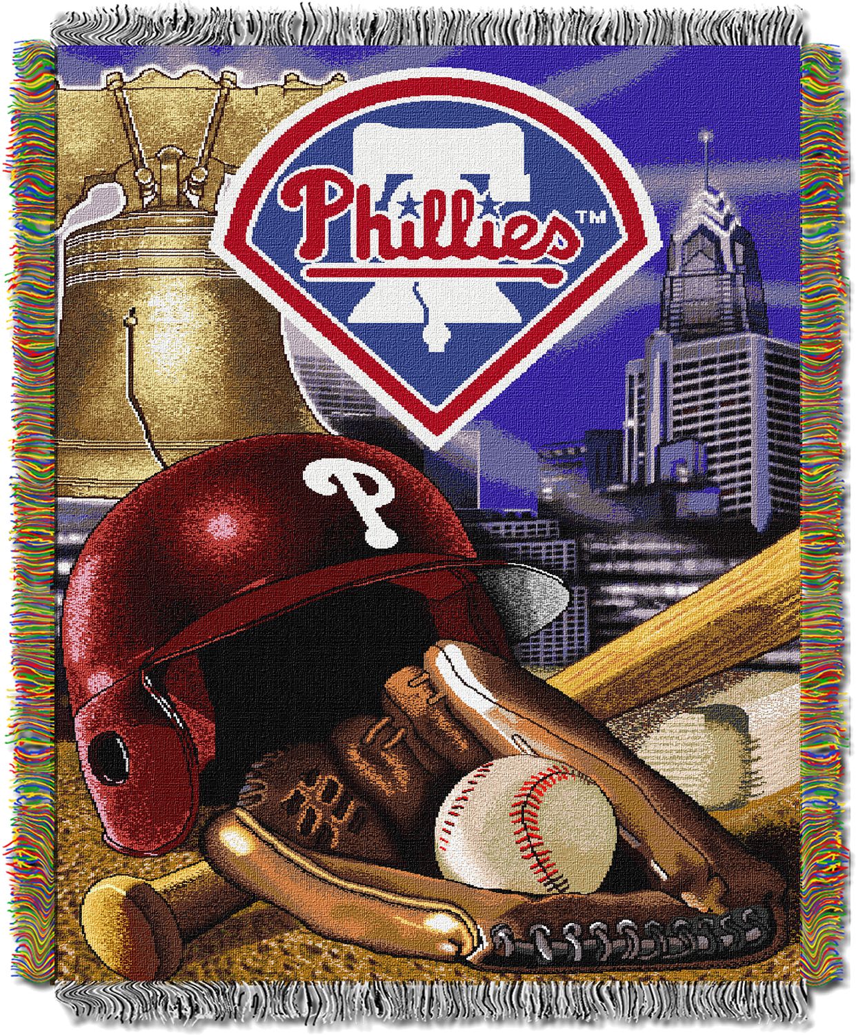 Get the decoration your fan cave’s been missing with the TheNorthwest® Philadelphia Phillies Home Field Advantage Blanket. The eye-catching baseball images featured at the forefront with the Philadelphia-themed background shows your unbeatable passions for the team. Measuring 46” x 60”, this throw is a great size for snuggling with on the couch or for hanging up on a wall. Cover up and show you team fandom with this woven blanket.