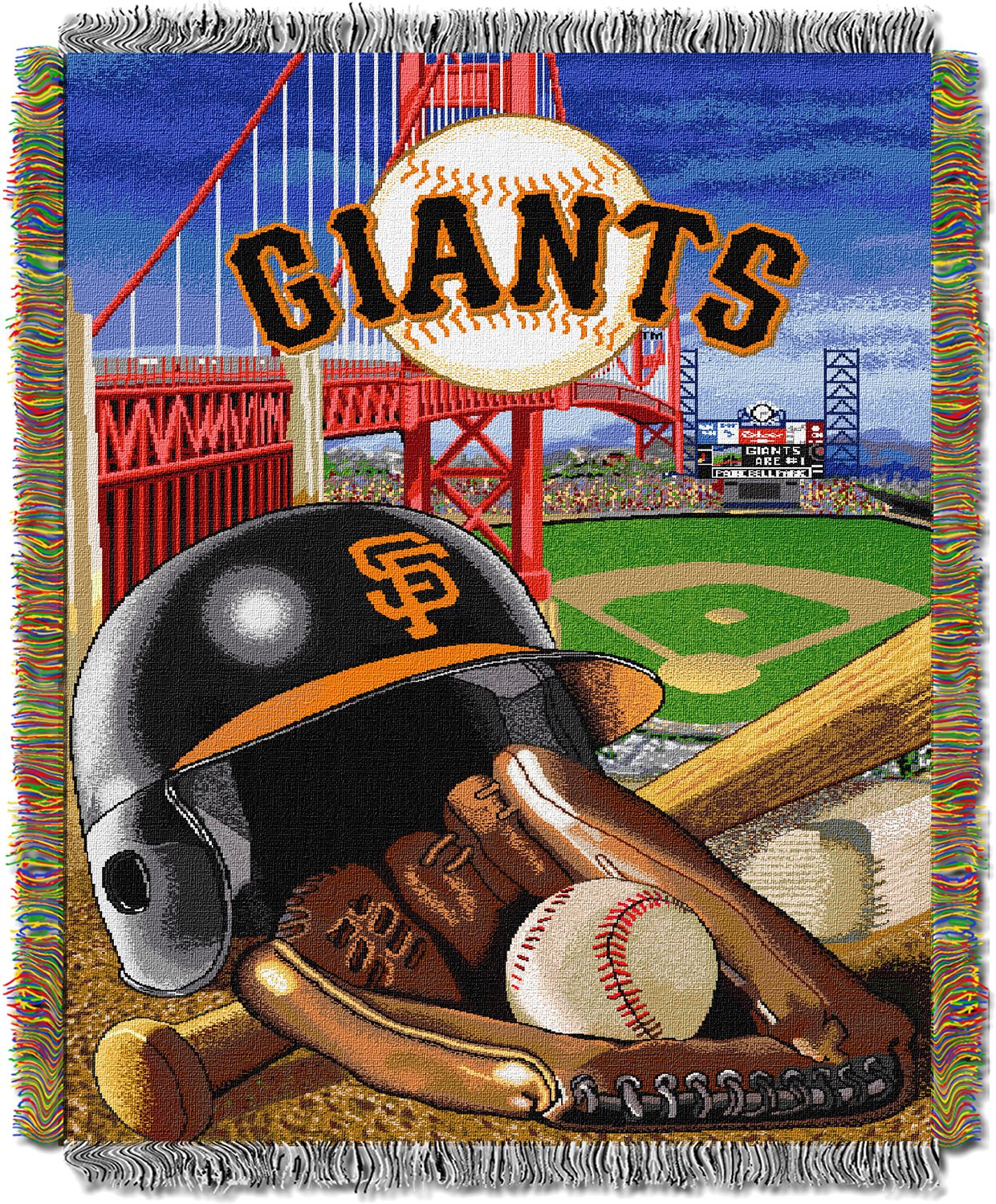 Get the decoration your fan cave’s been missing with the TheNorthwest® San Francisco Giants Home Field Advantage Blanket. The eye-catching baseball images featured at the forefront with the San Francisco-themed background shows your unbeatable passions for the team. Measuring 46” x 60”, this throw is a great size for snuggling with on the couch or for hanging up on a wall. Cover up and show you team fandom with this woven blanket.