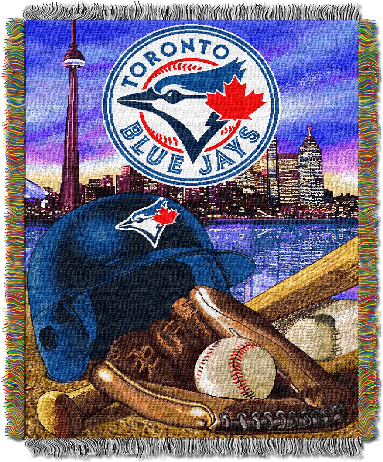 Get the decoration your fan cave’s been missing with the TheNorthwest® Toronto Blue Jays Home Field Advantage Blanket. The eye-catching baseball images featured at the forefront with the Toronto-themed background shows your unbeatable passions for the team. Measuring 46” x 60”, this throw is a great size for snuggling with on the couch or for hanging up on a wall. Cover up and show you team fandom with this woven blanket.