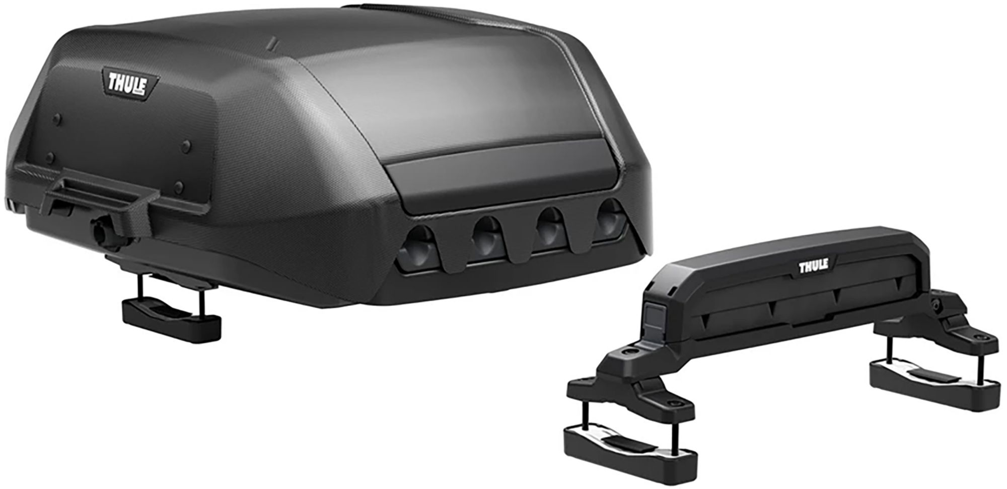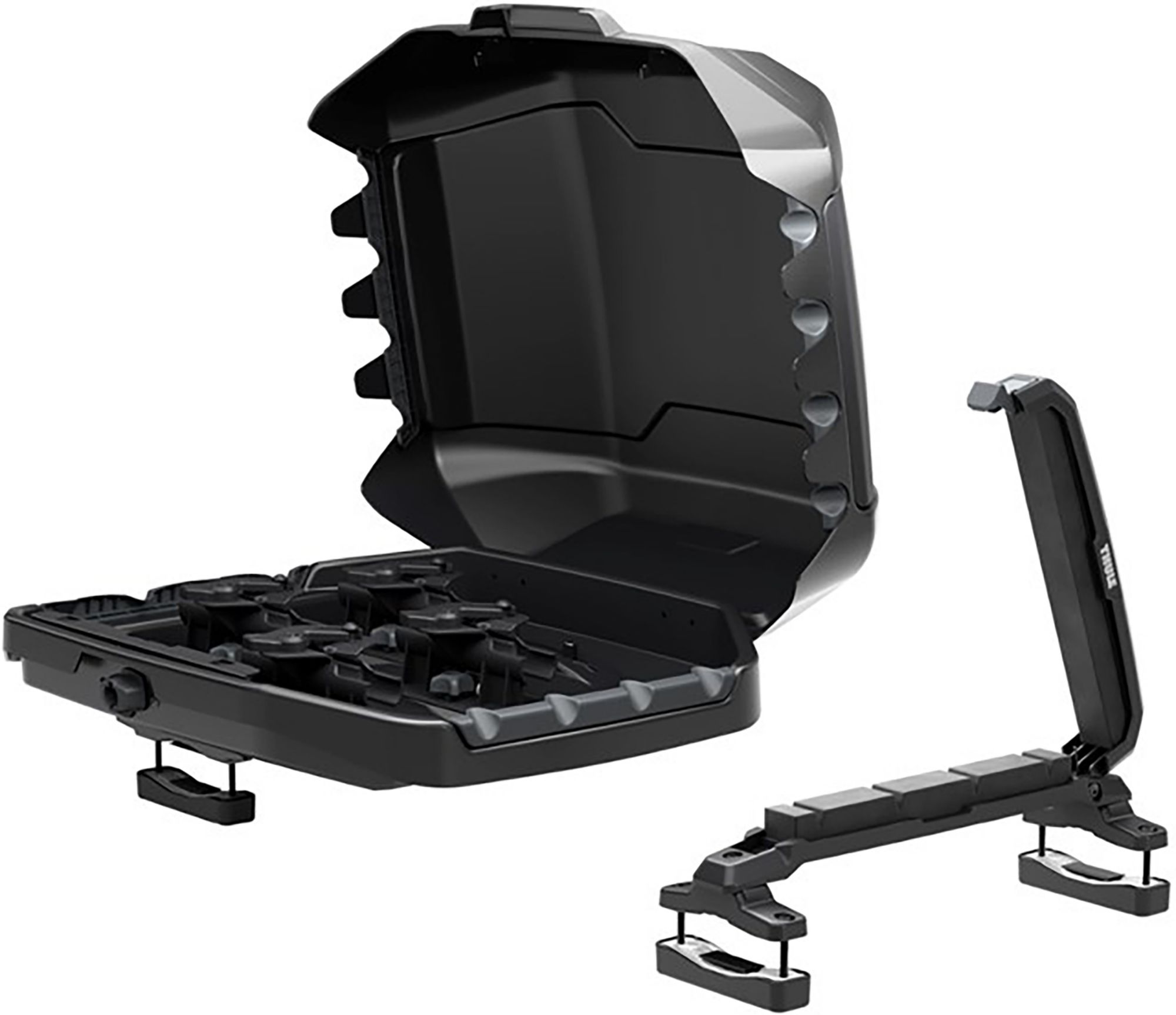 Always at the ready with Thule OnShore – a spacious fishing rod carrier that allows you to safely and securely transport up to 4 fully rigged rods - ready to cast. The durable ABS shell protects your valuable tackle reels while the padded front mounting system secures your rod safely when driving. Since you transport your fishing rods fully rigged, you can spend more time casting, catching fish, or telling your buddies about the one that got away. You arrive rigged and ready to go – with Thule Onshore, you get to enjoy more time fishing and less time rigging up!
