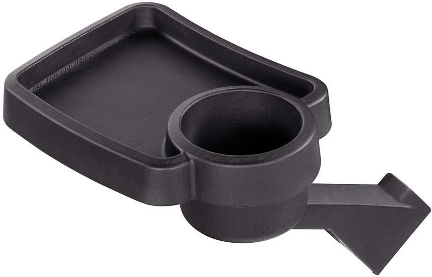 Features a cup holder and tray