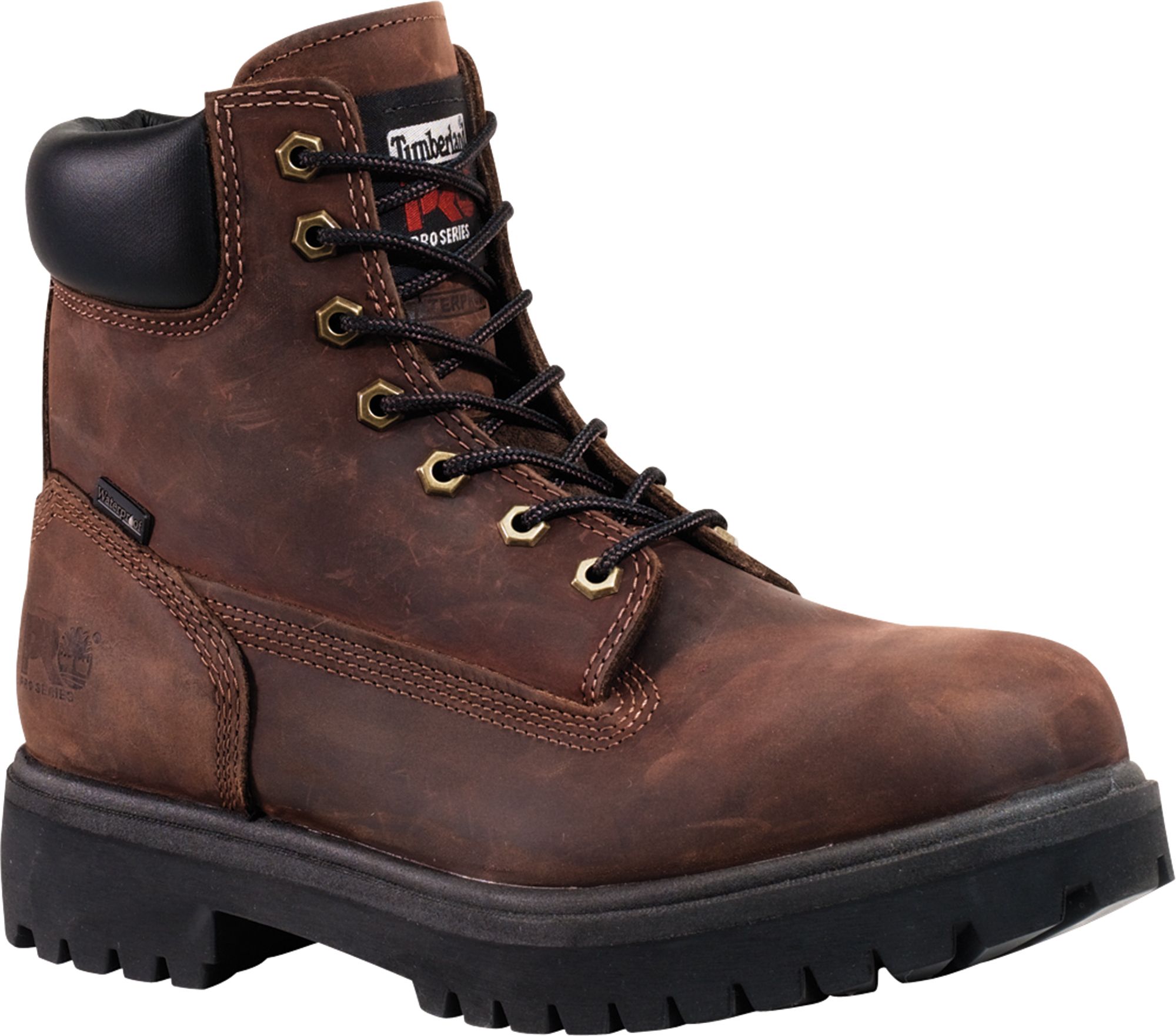 A hard day’s work comes standard with every wear in the rugged, tough Timberland ® PRO ® Direct Attach 6'' Steel Toe work boot. Rain, snow and sleet are no match for this boot, which comes with seam-sealed waterproof leather uppers while a steel safety toe delivers protection on every job site. Nylon shock diffusion offers unmatched support, and a PRO ® rubber outsole is oil resistant and non-marking for grip on any jobsite’s ground.
