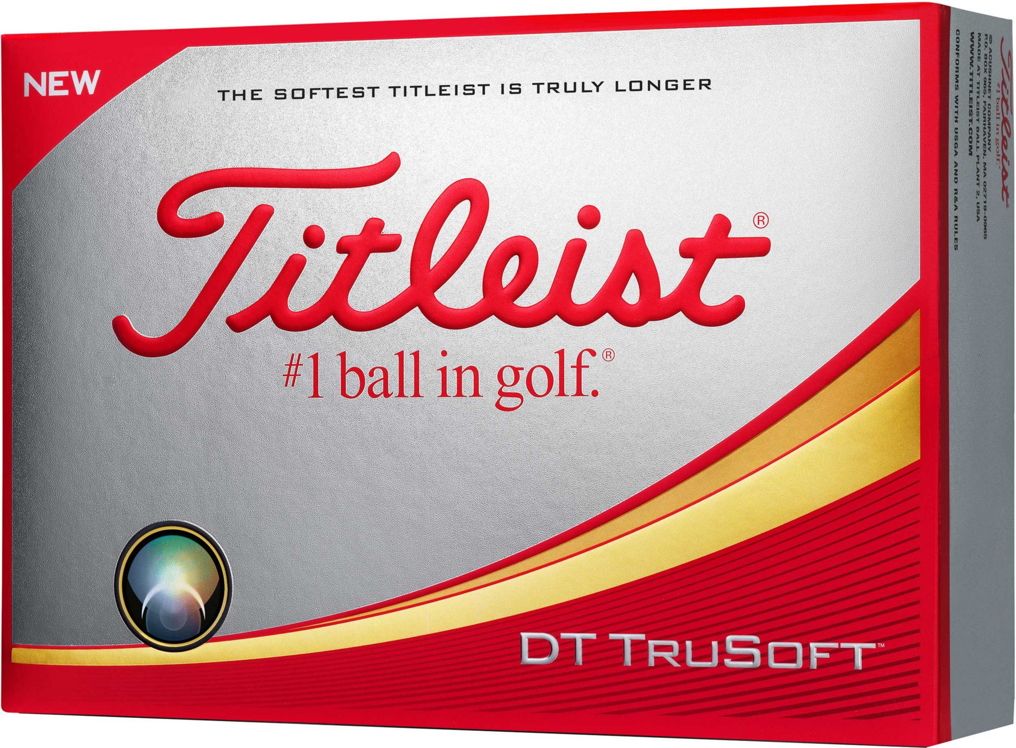 Titleist DT TruSoft has been redesigned with a new core and a new cover, delivering longer distance on all shots. It’s the softest feeling Titleist and provides superior distance through low spin on long shots and increased short game spin for stopping power on the green. At Titleist, R&D specifically designed DT TruSoft to be soft and – just as important – provide best in class performance for your game.