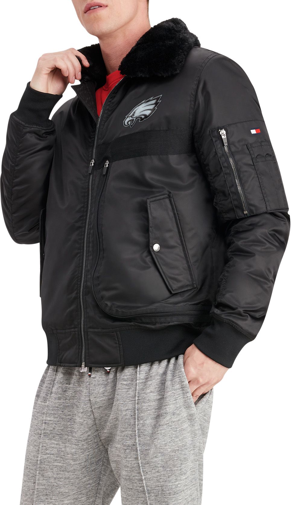 Tommy Hilfiger Men's Philadelphia Eagles Aviator Black Full-Zip Jacket