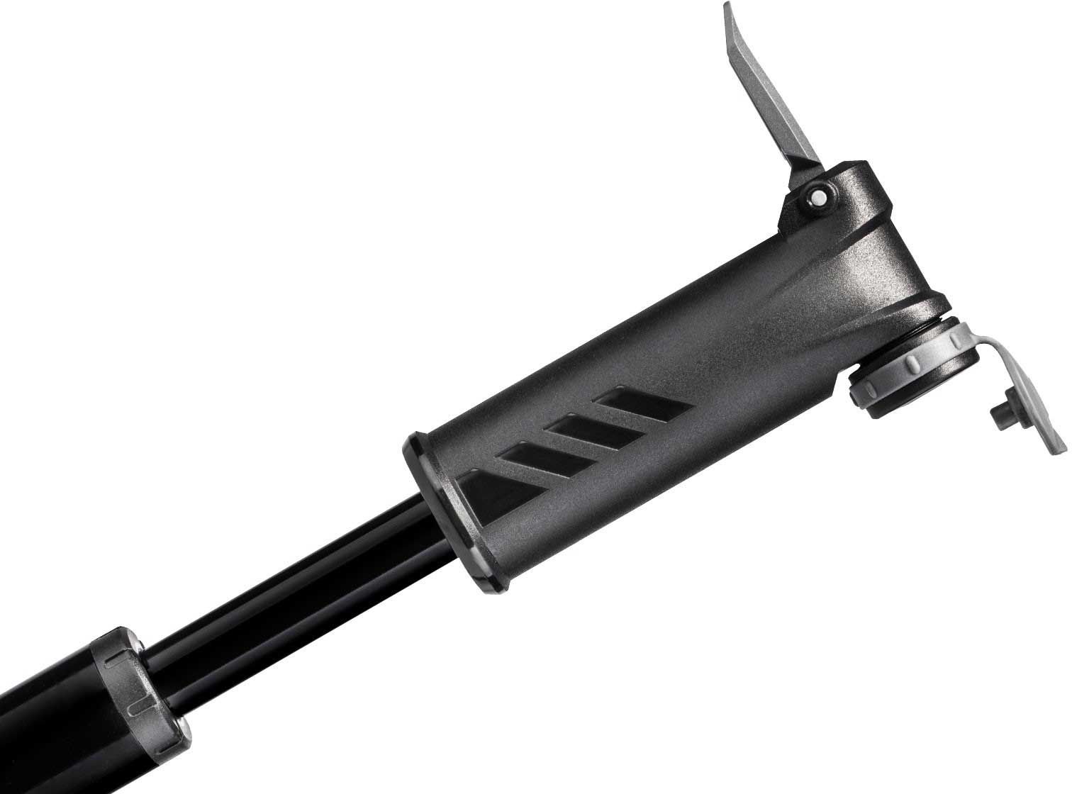 The Topeak® Mountain DA mini pump features an oversized aluminum barrel that fills large volume MTB, fat bike tires with ease. The Dual-Action (DA) doubles volume with each stroke and inflates tires up to pressure fast. Integrated dust cap keeps pump head clean and thumb lock lever insures air-tight seal.