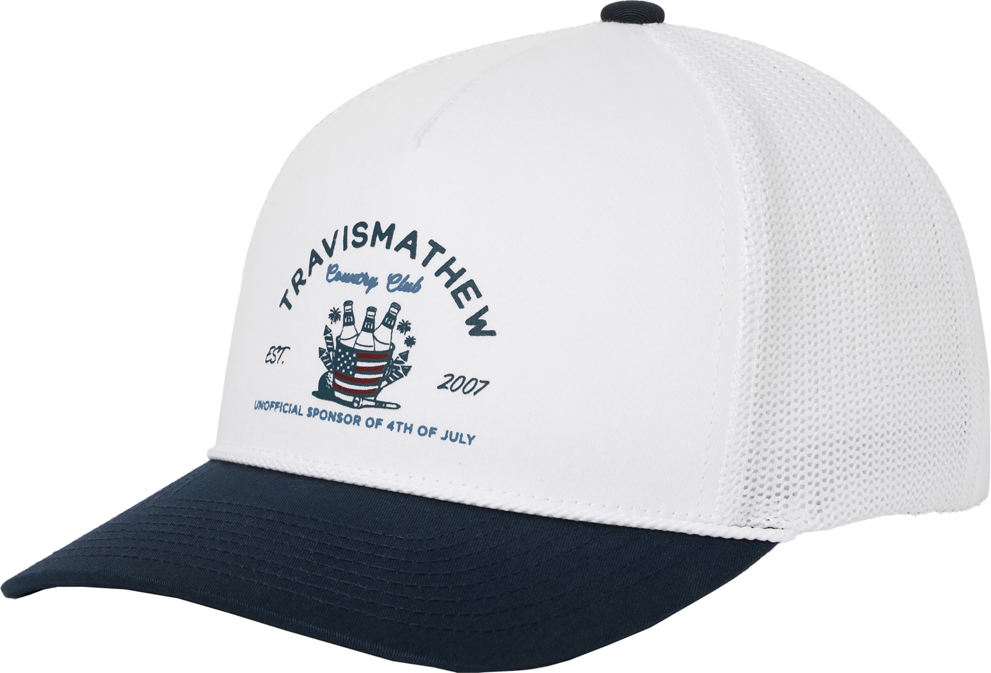 Consider this your official invite to the unofficial party. The FIRECRACKER FIESTA snapback brings backyard energy with a two- toned design, white rope detail across the bill, and a graphic featuring a bucket of beers labeled TravisMathew Country Club— complete with our honorary title: Unofficial Sponsor of the 4th of July. With breathable mesh and a classic snapback fit, it’s basically the life of the party in hat form.