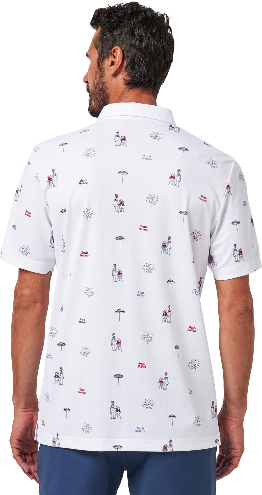 Big party energy, smaller-scale print. The NEIGHBORHOOD PARTY polo serves up backyard fun with a playful all-over design featuring our seasonal BBQing skeleton, fireworks, a stars-and-stripes umbrella, and the Life of the Party slogan. Lightweight and easygoing, it's the kind of polo that says you're here for the golf but staying for the grill.