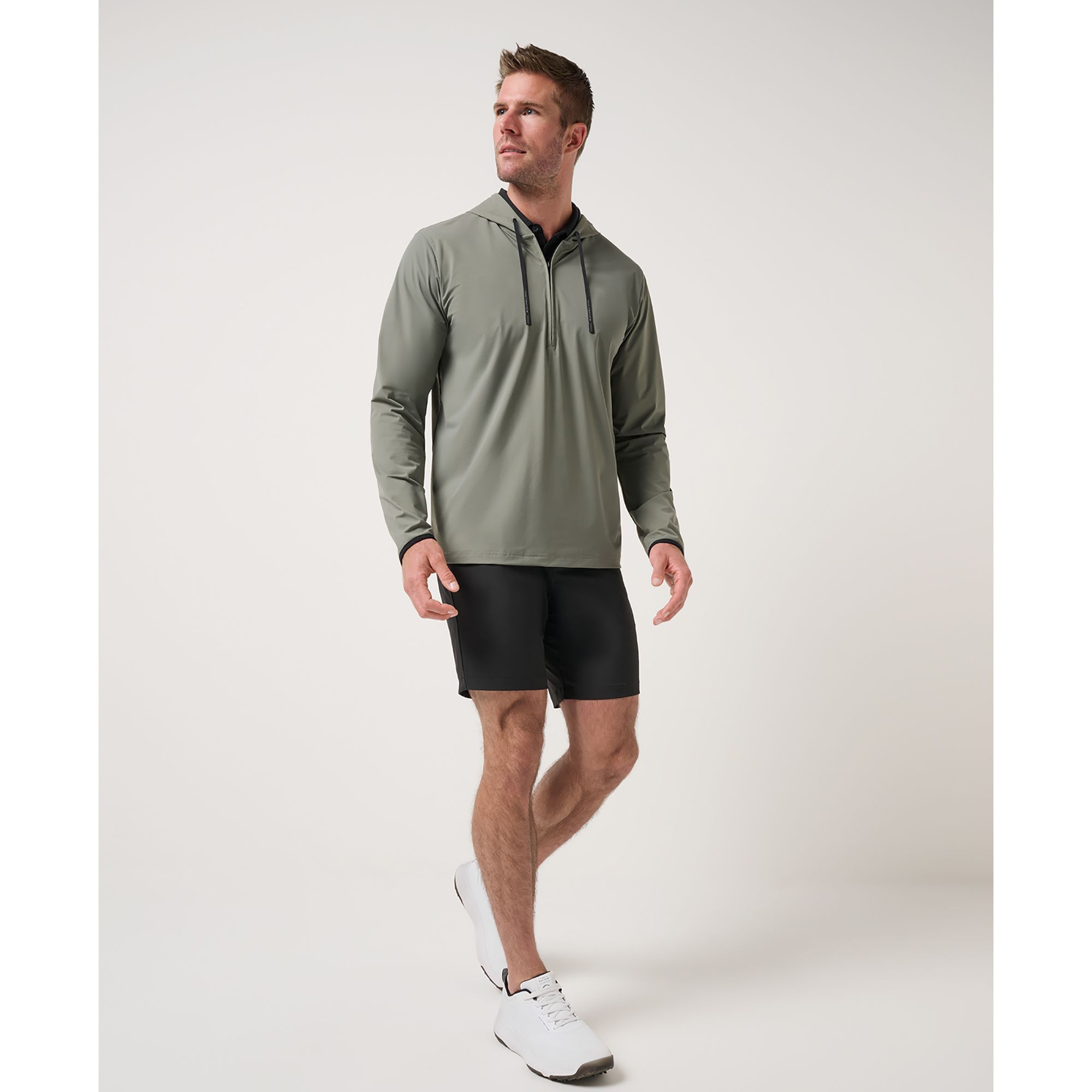 The HERO HOUR TECH HOODIE is your go-anywhere layer. Built from a stretch warp knit nylon blend, it flexes with every move and stays sharp through it all. Finished with a printed block logo and smart details like rubber-tipped drawcords, it's performance with polish.
