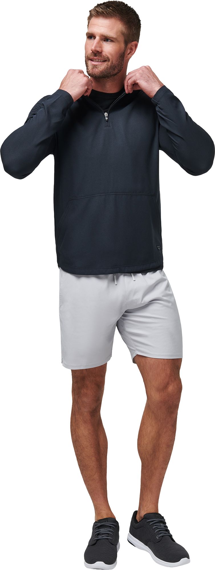 Can be worn to work out or dressed up with a polo. True to size