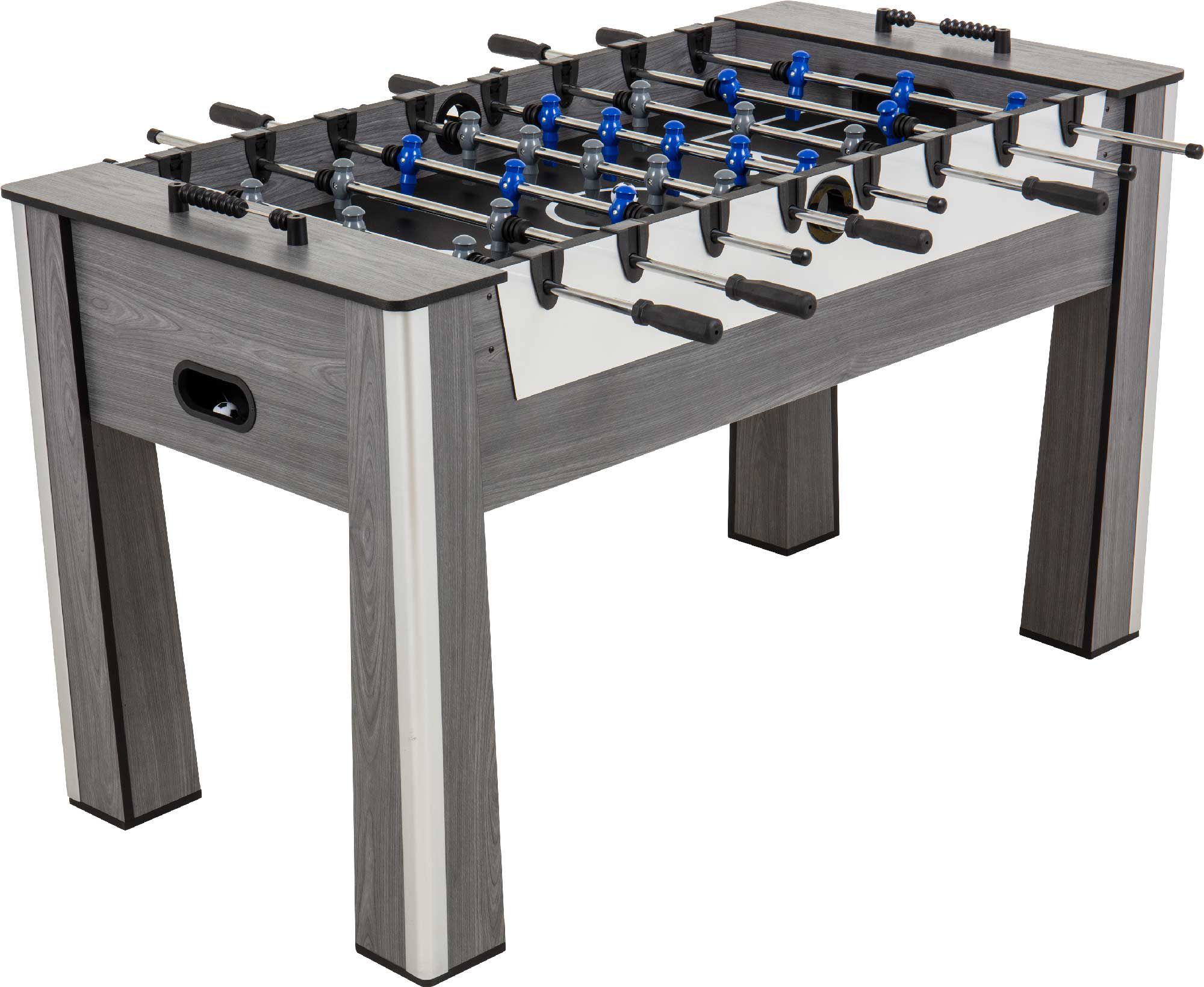 Add some fun to your family room with the Triumph 60” Huntington Foosball Table. This classic table game has smooth sliding metal player rods with comfortable handles that give you good grip. It features a slide scoring system so you can easily keep track of points, and includes leg levelers to give you a stable playing field.
