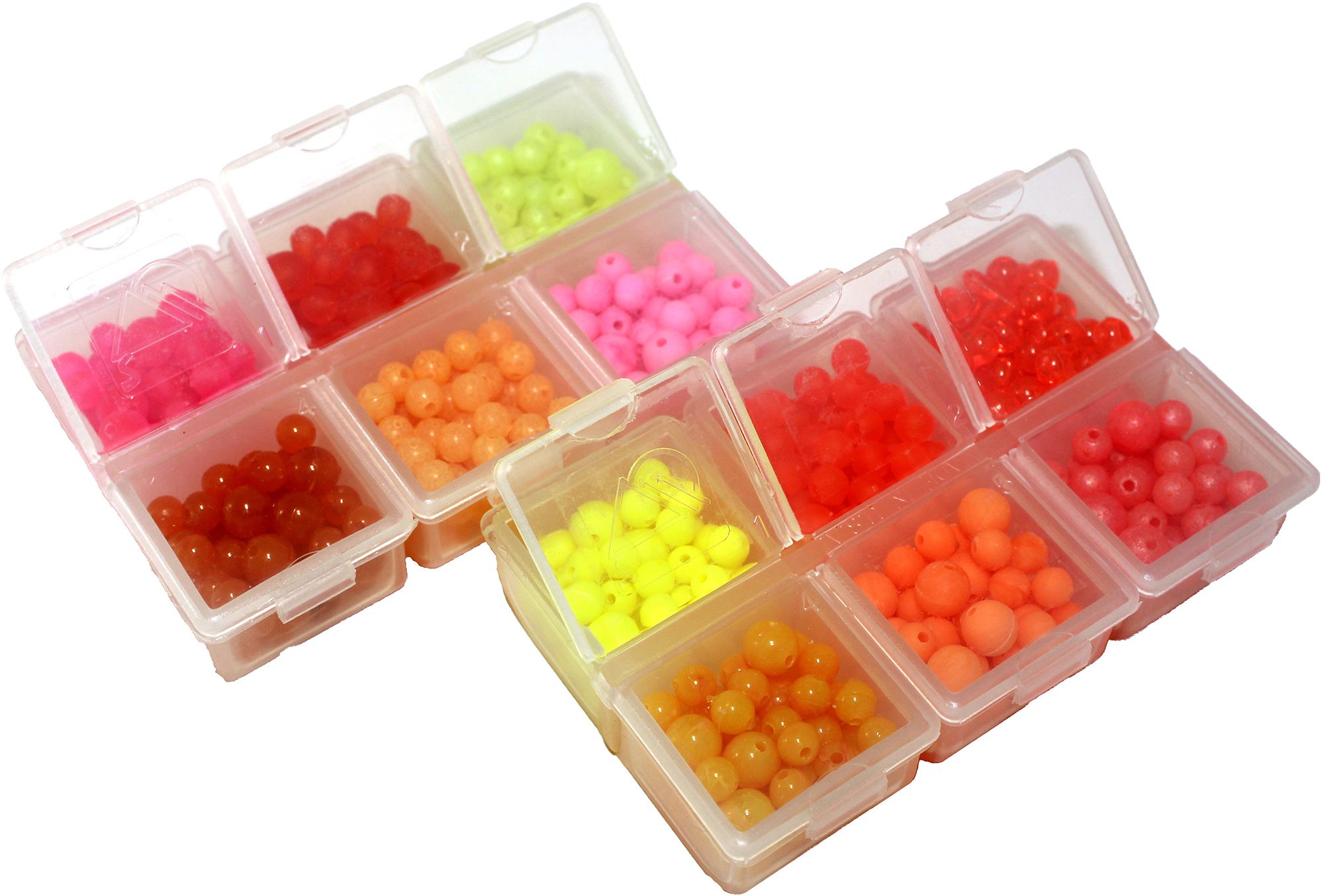The Erie Selection from Trout Beads® will help you lure in your next catch. This pack includes a mixture of the top selling patterns on Lake Erie Tributaries. Each of the six compartments in both boxes comes packed with 540 pieces overall. Load up your fishing vest with these Erie Selection Trout Beads.