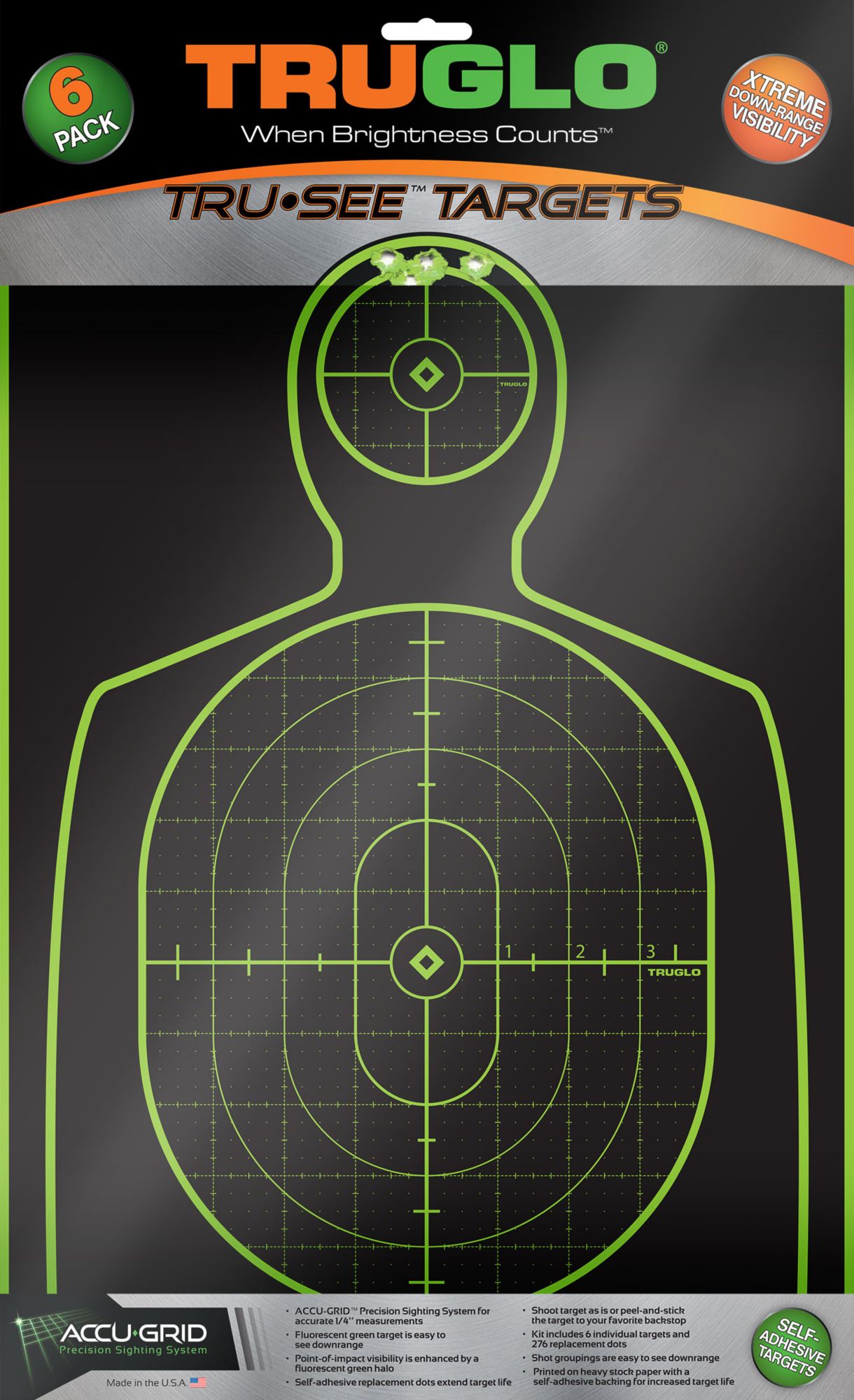 With a flat finish and fluorescent background, the Tru-See™ Splatter Handgun Target provides you with a clear and easy way to practice your shooting. In addition, fluorescent halos appear around points of impact to give you immediate feedback. You can use this target as is or use the adhesive backing to attach it to your favorite backdrop. The TRUGLO® Tru-See Splatter Handgun Target comes in a pack of 6 with replacement dots.