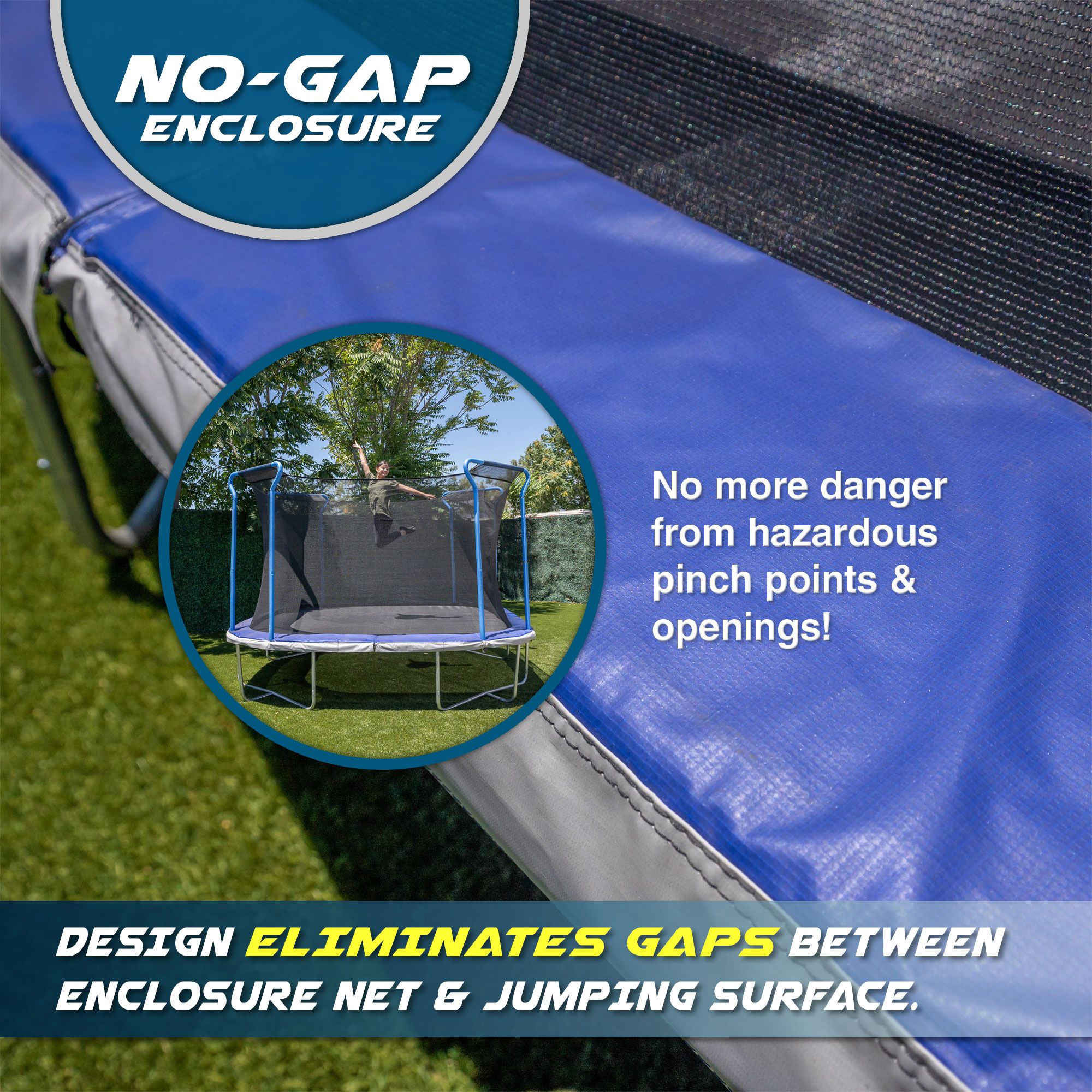 • UV-resistant polyethylene enclosed net prevents your kids from falling out while jumping