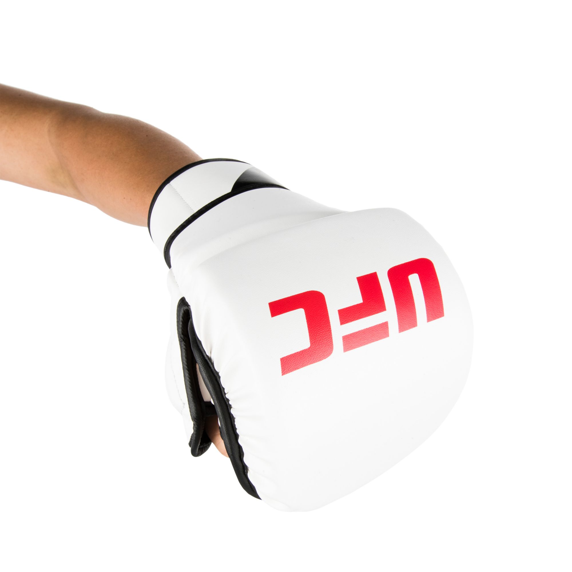 Train like the pros with the UFC® 8 oz MMA Gloves. An inch of impact-dispersing layer of soft foam protects your knuckles while soft flexible synthetic leather still allows you to open and close your hands comfortably. Transition padding between knuckle and wrist adds both comfort and extra protection, making these the ideal gloves for long training sessions.