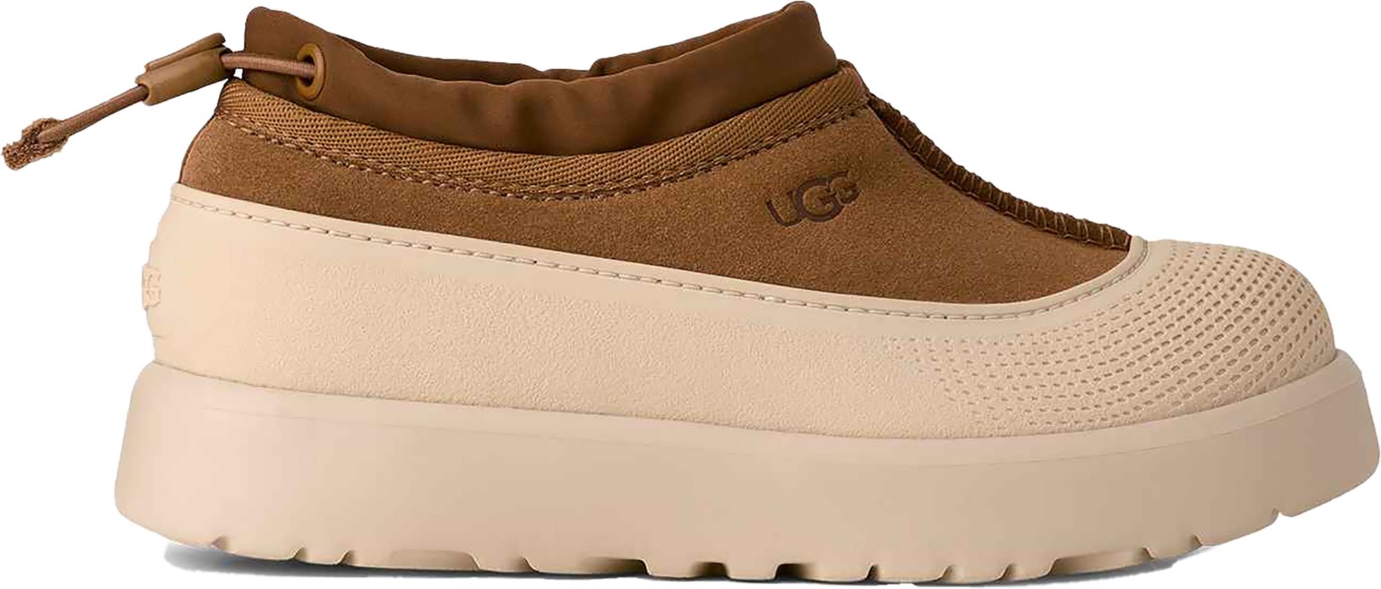 Who (and we can't stress this enough) wants to take a walk in the drizzle with us? We can always count on the Tasman Weather Hybrid to travel with us outdoors, even if its a little wet out there. Featuring waterproof suede and seam-sealed construction as well as our cozy UGGplush™ upcycled wool lining, the Tasman Weather Hybrid offers a light, slipper feel with an easy slip-on silhouette. The outsole is made from renewable, rainwater-nourished sugarcane and features a permanent galosh for wet conditions. Pair it with our adult sizes for a mini-me moment.