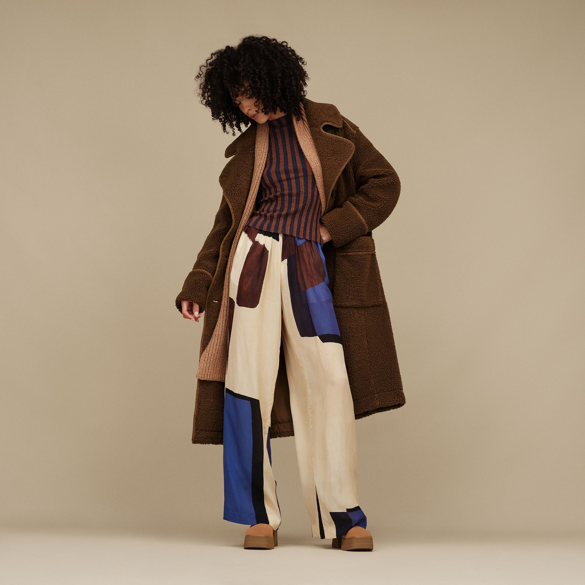 If we fell in love with a coat, it might the Sema. The Sema UGGfluff Coat is a full-length coat made with double-knit plush fleece and a full lining. From the oversized collar to the contrast stitching, wearing this is the most comfortable way you've ever made a statement.
