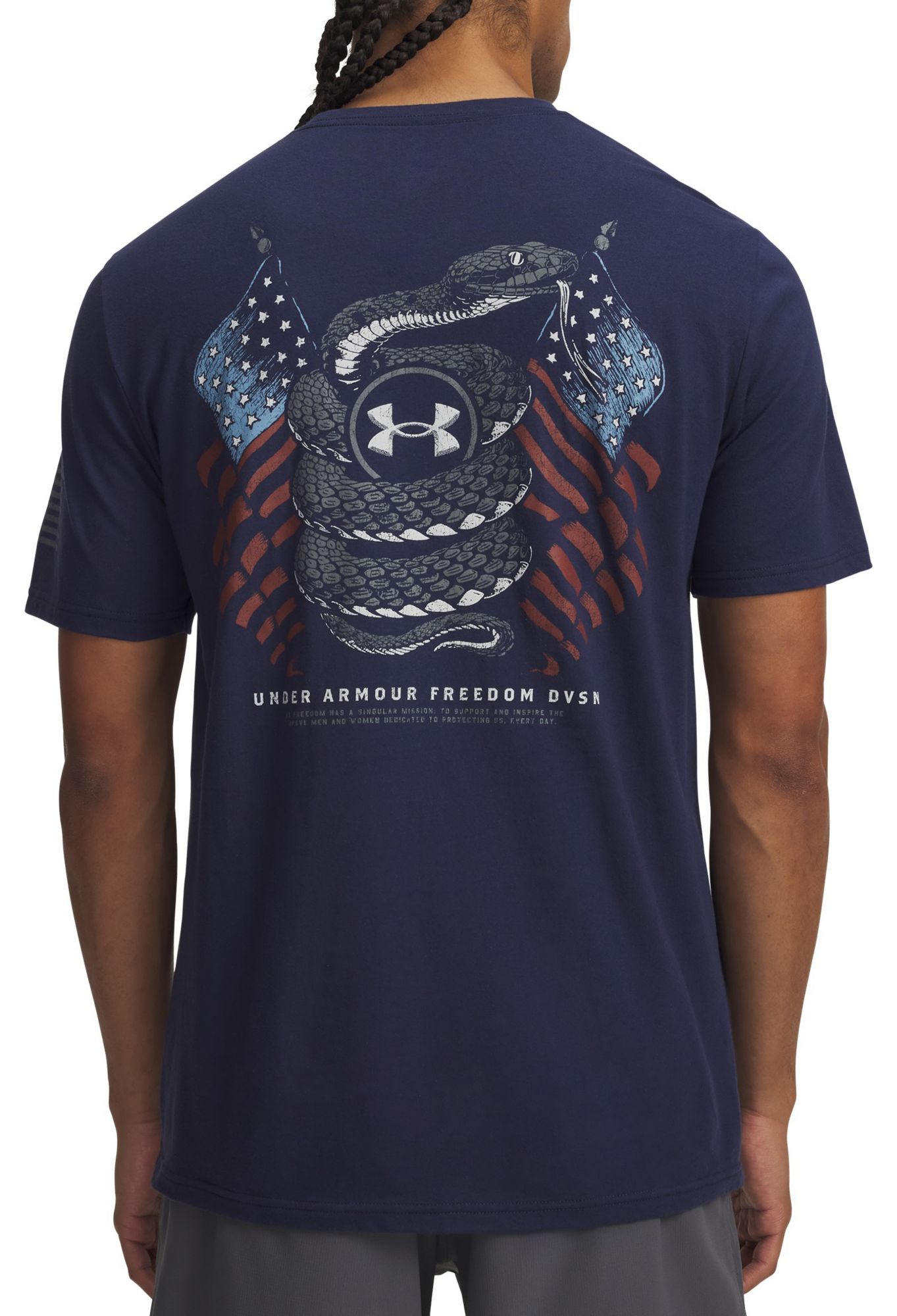 The Under Armour Freedom Snake Graphic T‑Shirt is a great blend of comfort, durability, and bold style. The cotton‑poly blend feels soft right out of the package, and it’s lightweight enough for everyday wear without feeling flimsy. The ribbed collar keeps its shape, and the shirt holds up well after multiple washes — no shrinking or fading issues so far. The standout feature is definitely the graphic. The snake design is sharp, clean, and eye‑catching without being over the top. It has that classic UA “Freedom” line vibe: patriotic, rugged, and outdoors‑ready. Whether you’re wearing it to the gym, running errands, or pairing it with jeans for a casual day out, it fits right in. If you like shirts that are comfortable, durable, and have a strong graphic presence, this one is absolutely worth picking up — especially at its very reasonable price point.