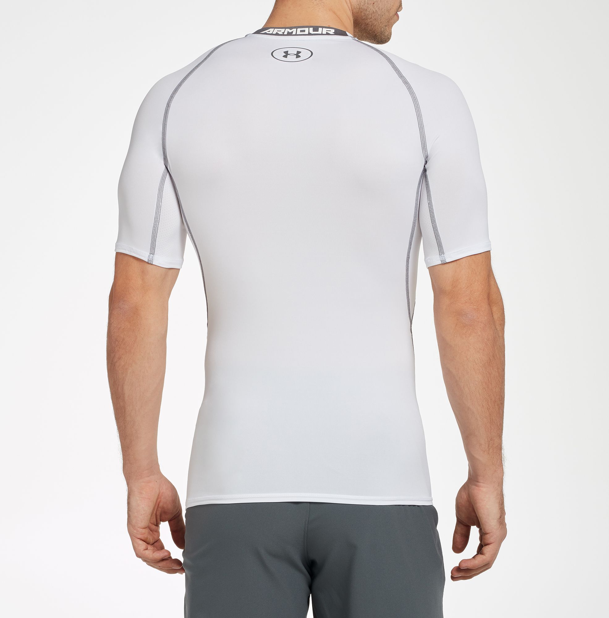 When you ramp up your intensity, rely on the Under Armour® Men's HeatGear Armour T-Shirt to keep you cool and collected. Made with soft and compressive HeatGear® fabric, mesh underarm and back panels for breathability, and UPF 30+ to protect skin from the sun, this men's short sleeve tee is made for domination. Keep your cool with the UA HeatGear Armour T-Shirt.