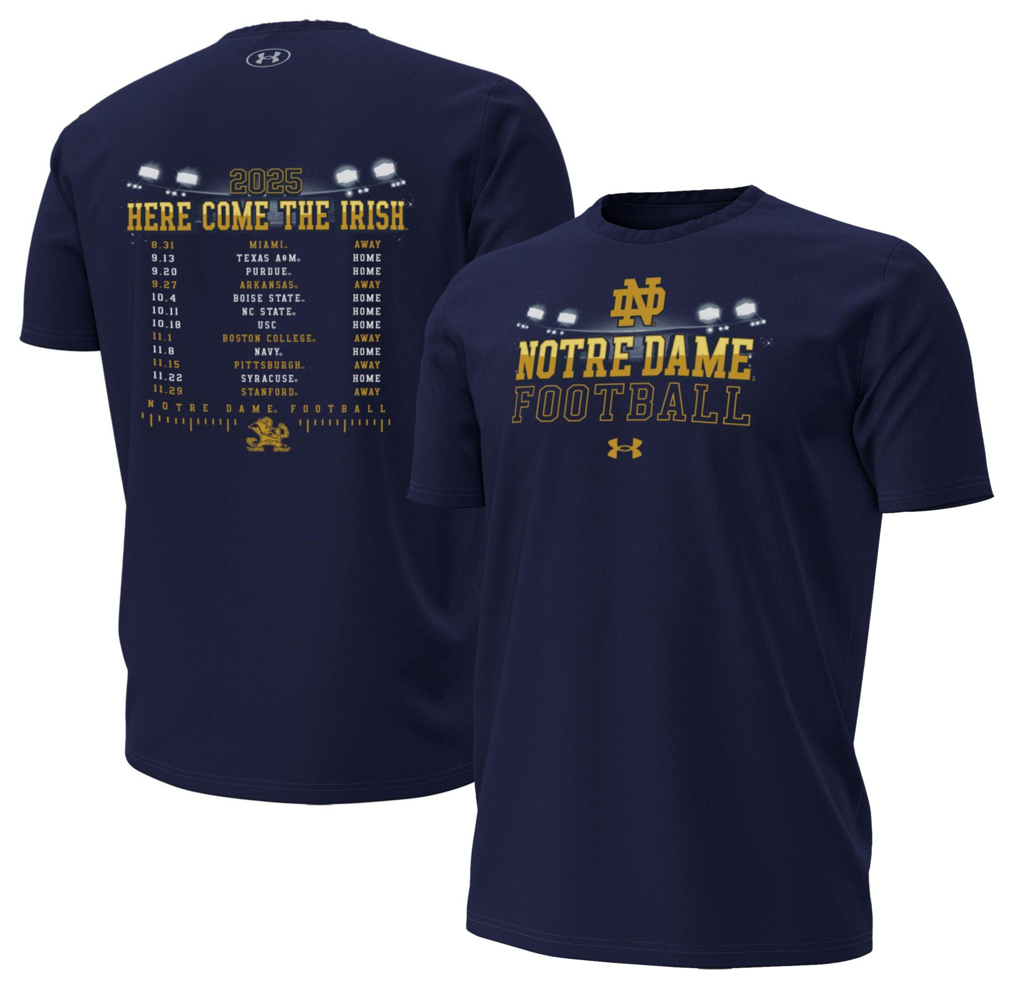 Under Armour Men's Notre Dame Fighting Irish Navy Football Fall 2025 Schedule T-Shirt