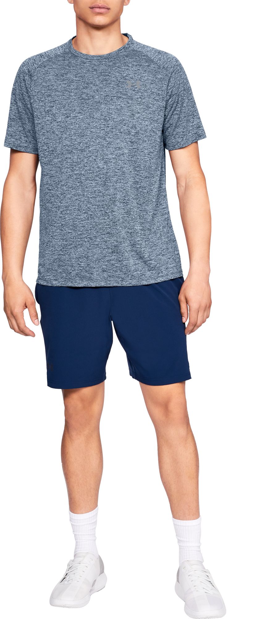 This Under Armour Men's Tech 2.0 Short Sleeve T-Shirt features incredibly lightweight UA Tech fabric that offers quick-drying comfort and a super soft feel. Moisture-wicking technology keeps you dry, while anti-odor technology provides built-in odor protection. With a classic crewneck design and streamlined fit, this tee is perfect for both casual wear and intense workouts.
