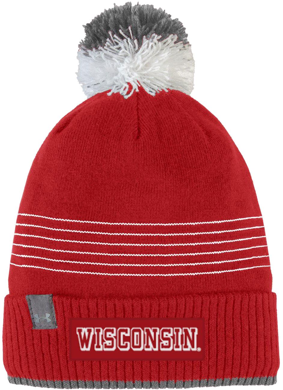 Under Armour Men's Wisconsin Badgers Red Pom Knit Beanie