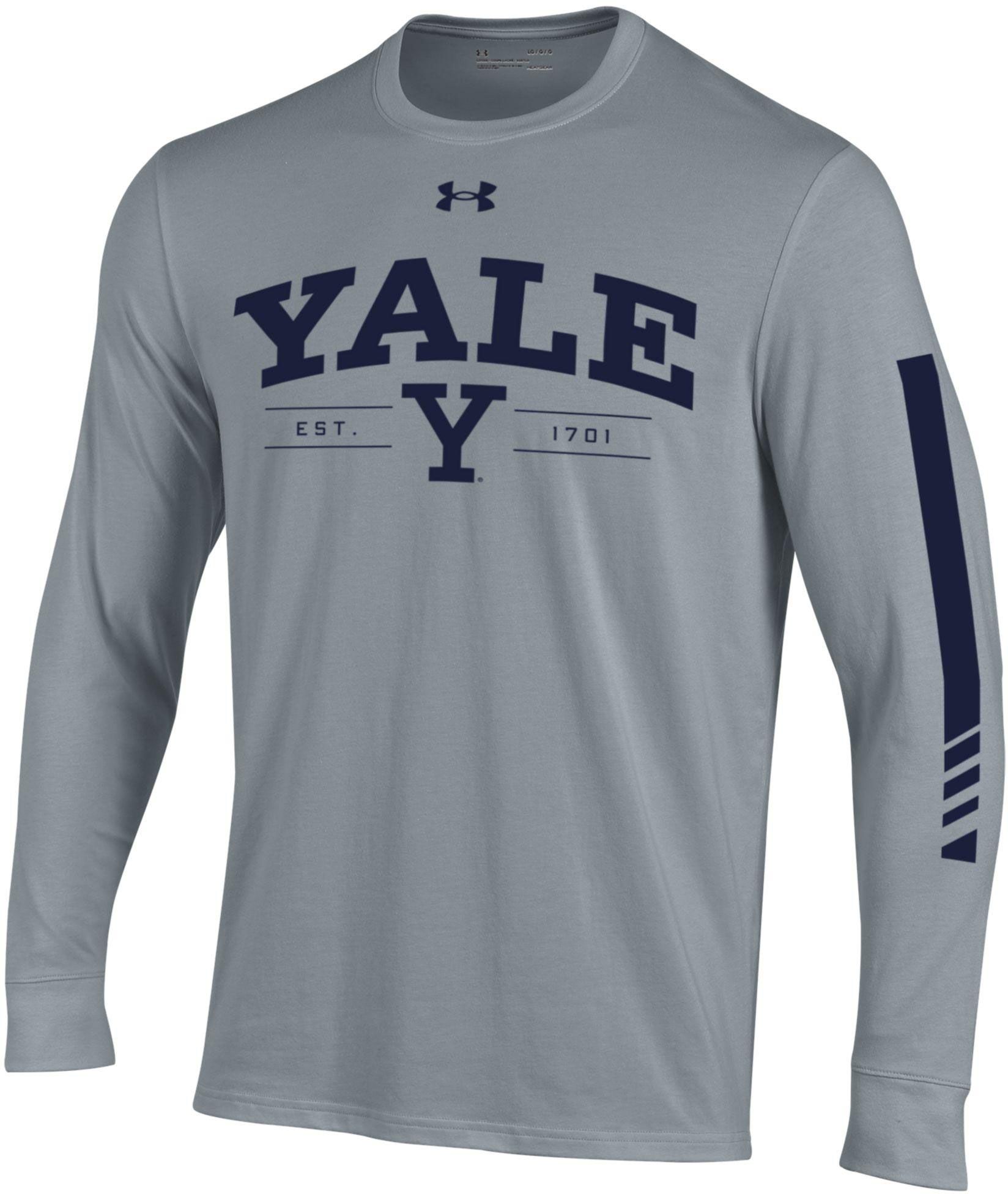 Under Armour Men's Yale Bulldogs Heather Grey Performance Cotton Long Sleeve T-Shirt