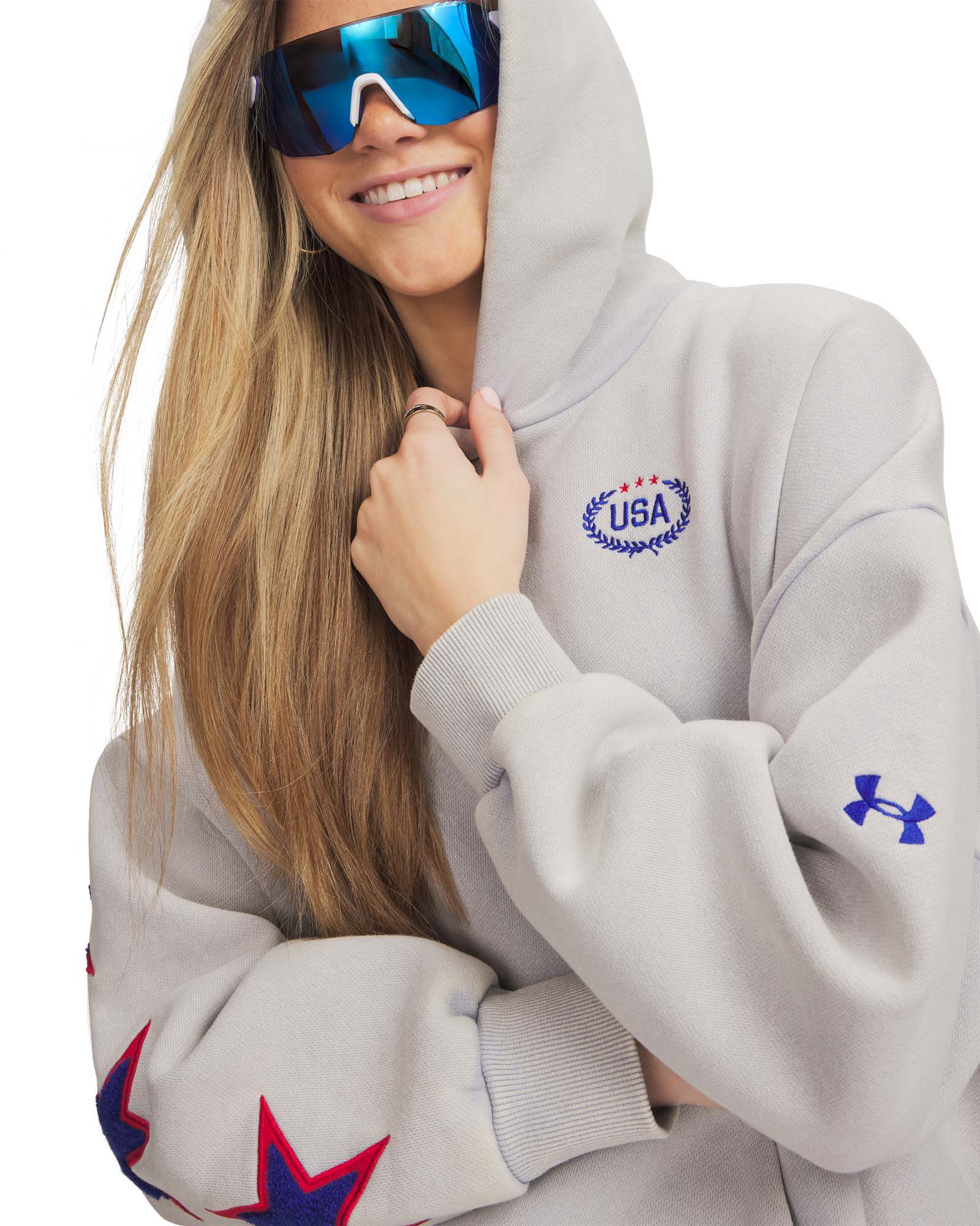 UA Icon Fleece has the feel of your favorite old school fleece with a clean, oversized fit that looks just as good with gym gear as it does with street clothes. Show your country pride with this women's hoodie.