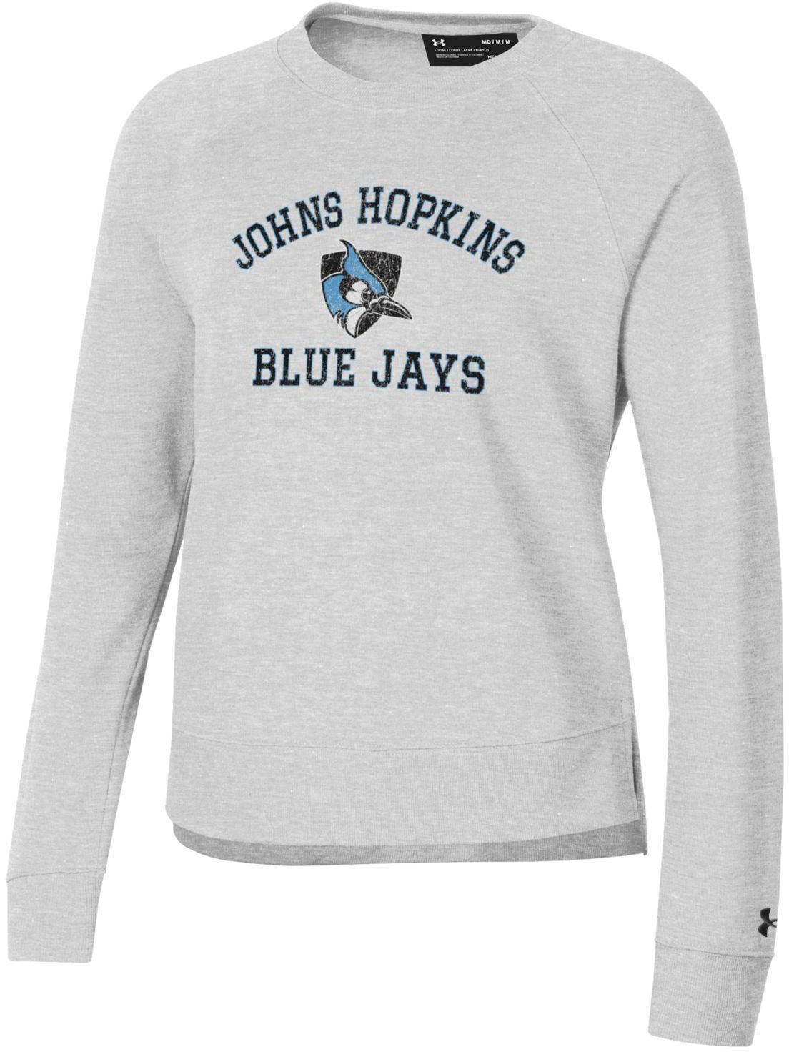 Under Armour Women's Johns Hopkins Blue Jays Silver Heather All Day Arched Logo Crew Pullover Sweatshirt