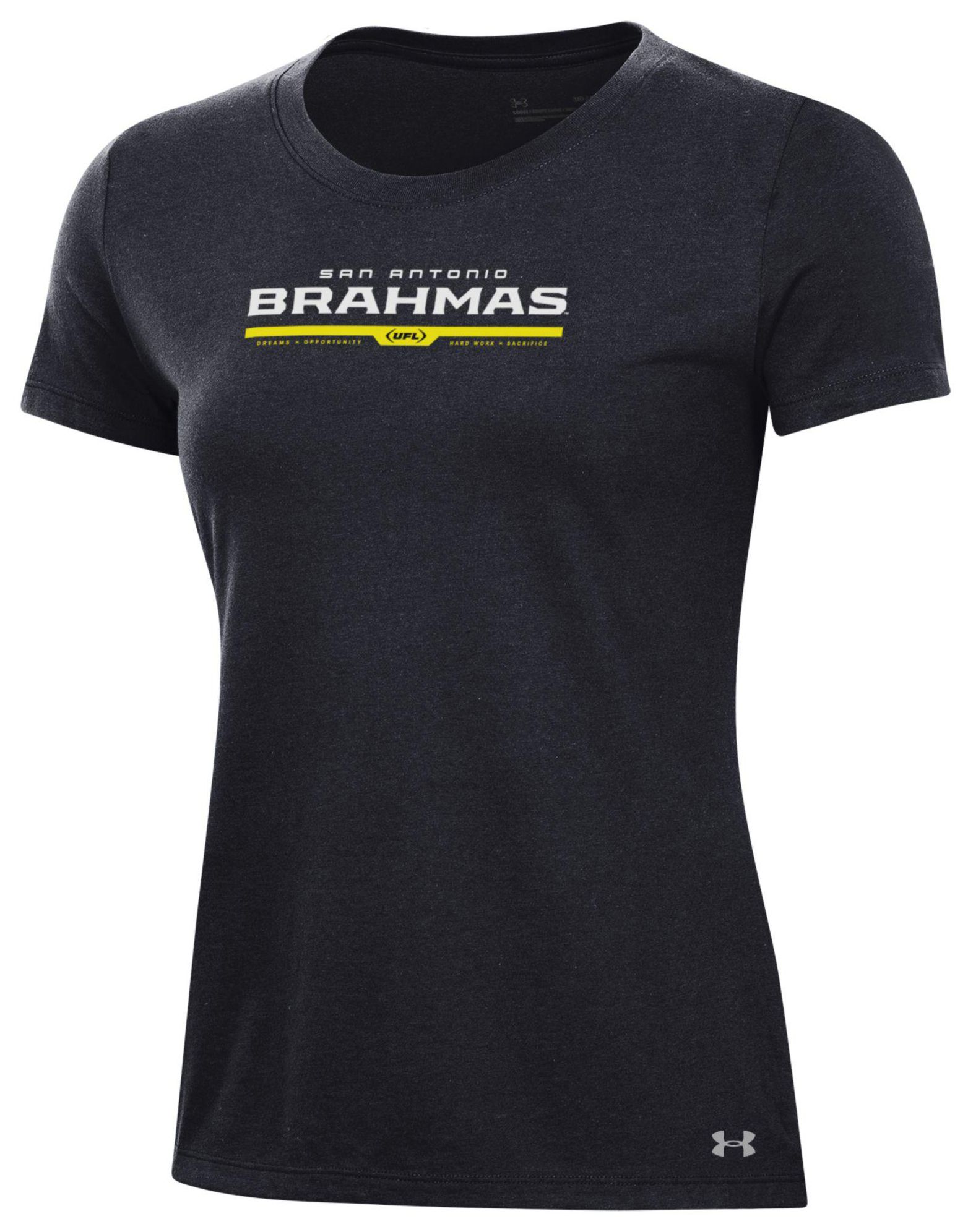 Under Armour Women's UFL San Antonio Brahmas Wordmark Logo Black T-Shirt