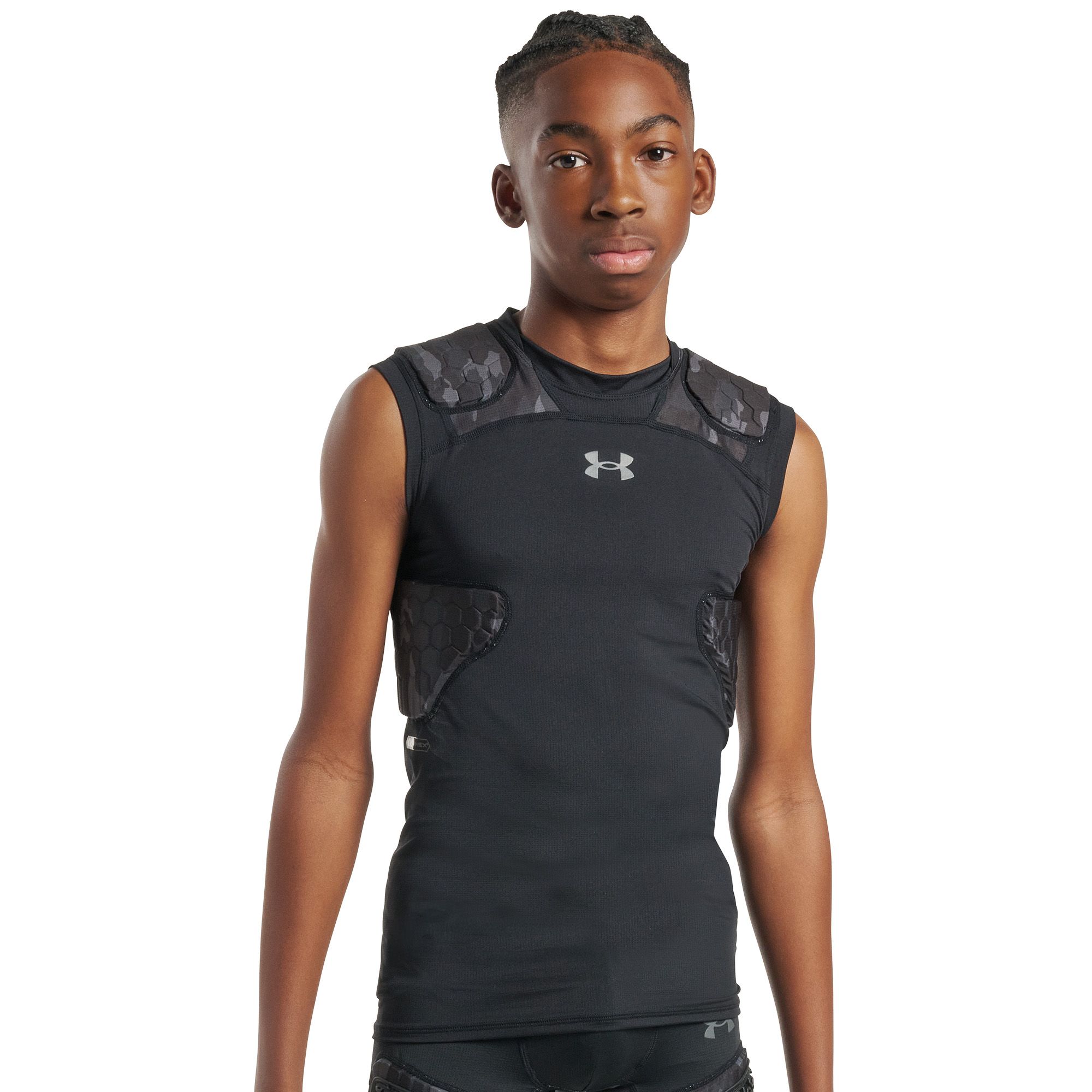 The UA Gameday Armour Pro 5-Pad Top features patented McDavid® HEX® technology—the leading protective padding in the game—for protection at the ribs, shoulders, and spine.